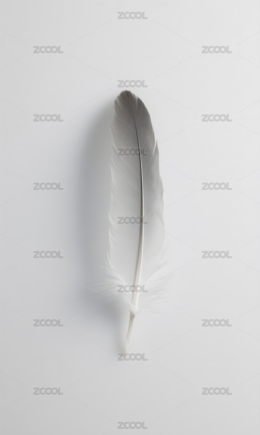 一个飘落的白色羽毛和白色背景