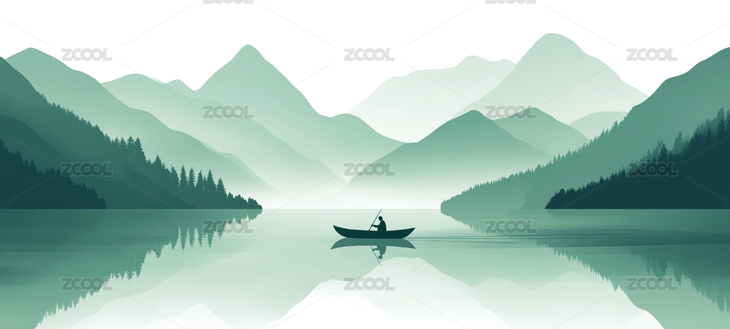 山峦湖泊泛舟垂钓