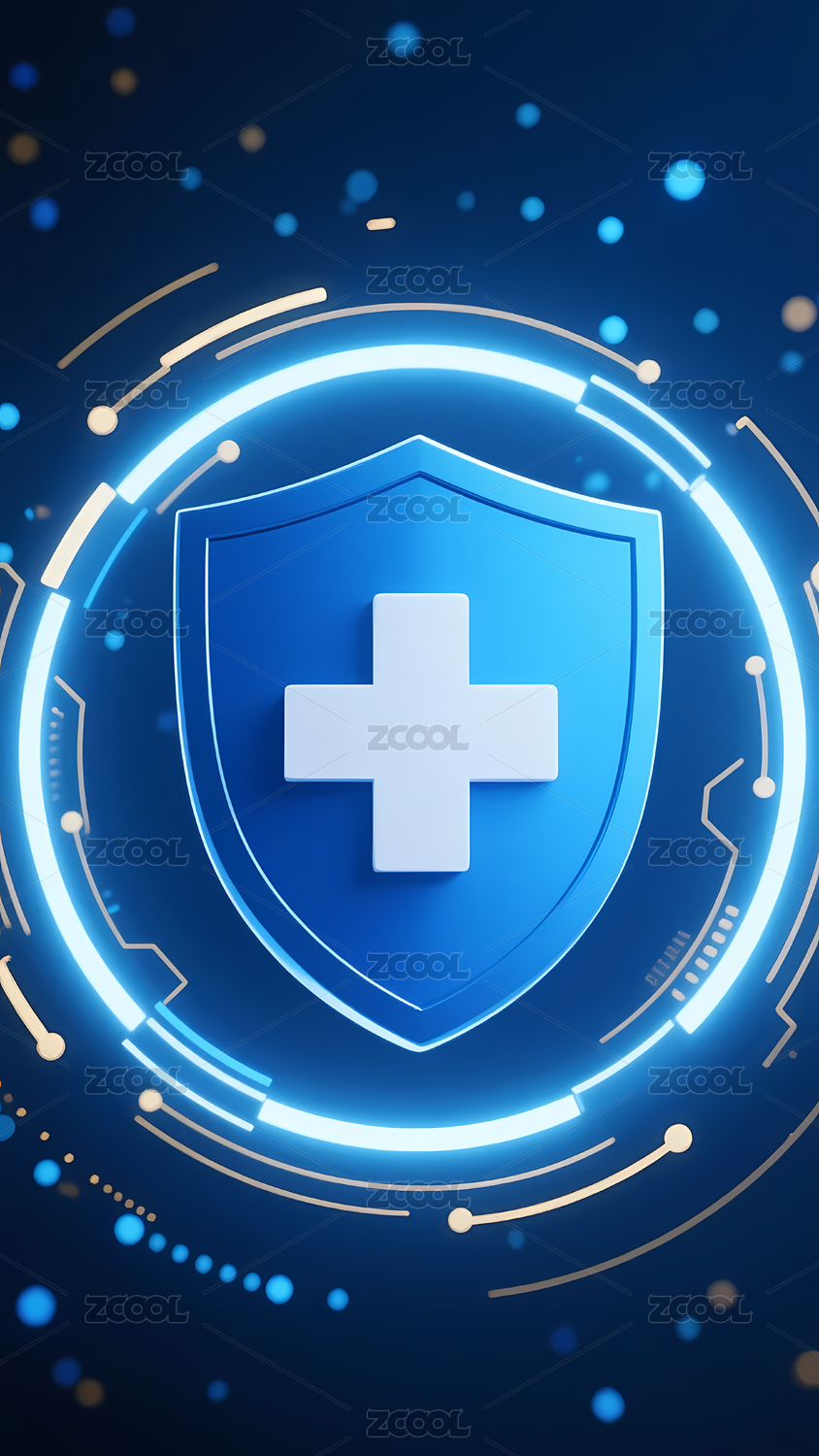 蓝色商务科技3D渲染盾牌图标主视觉背景