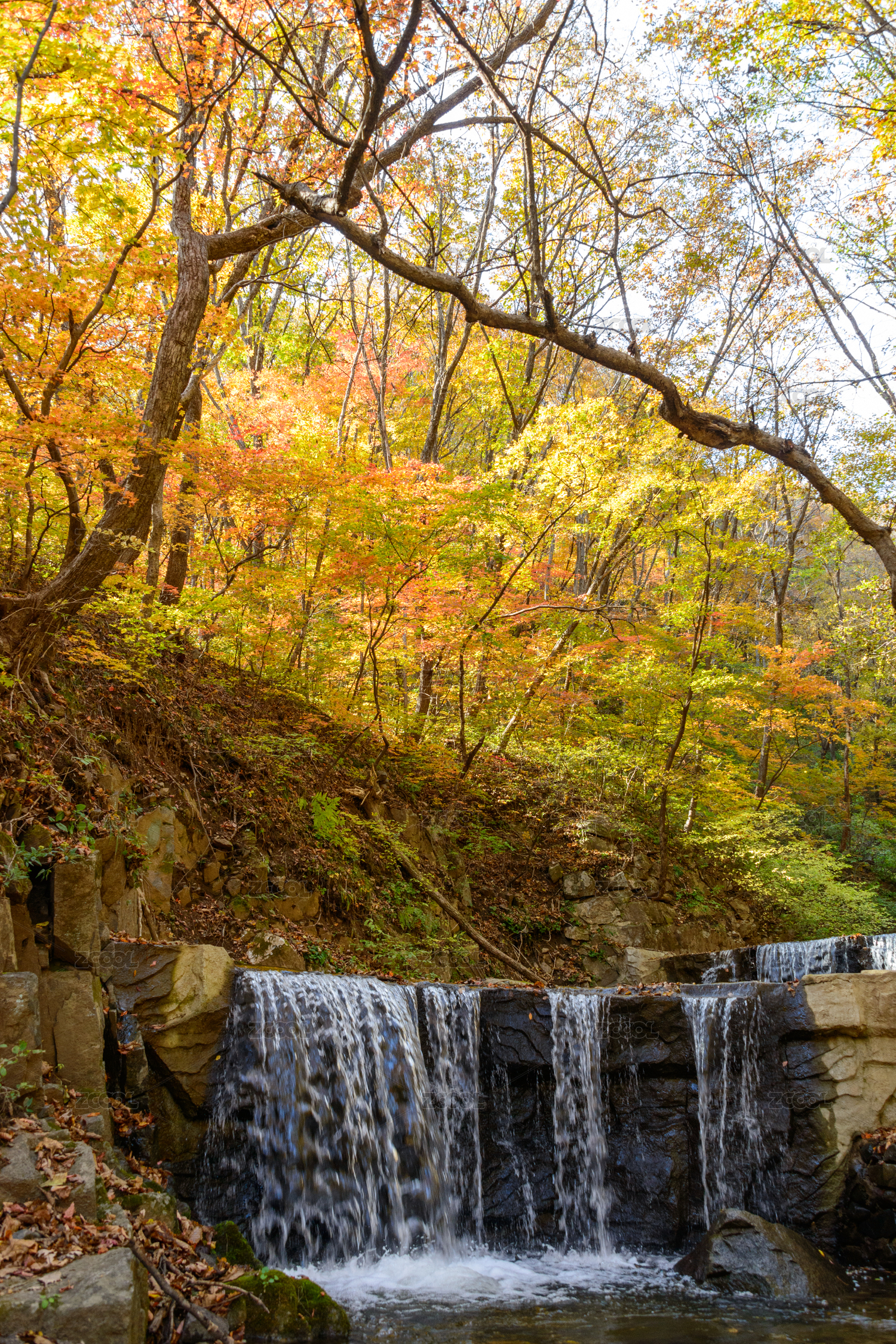 辽宁本溪大冰沟秋季枫叶岩石瀑布风光