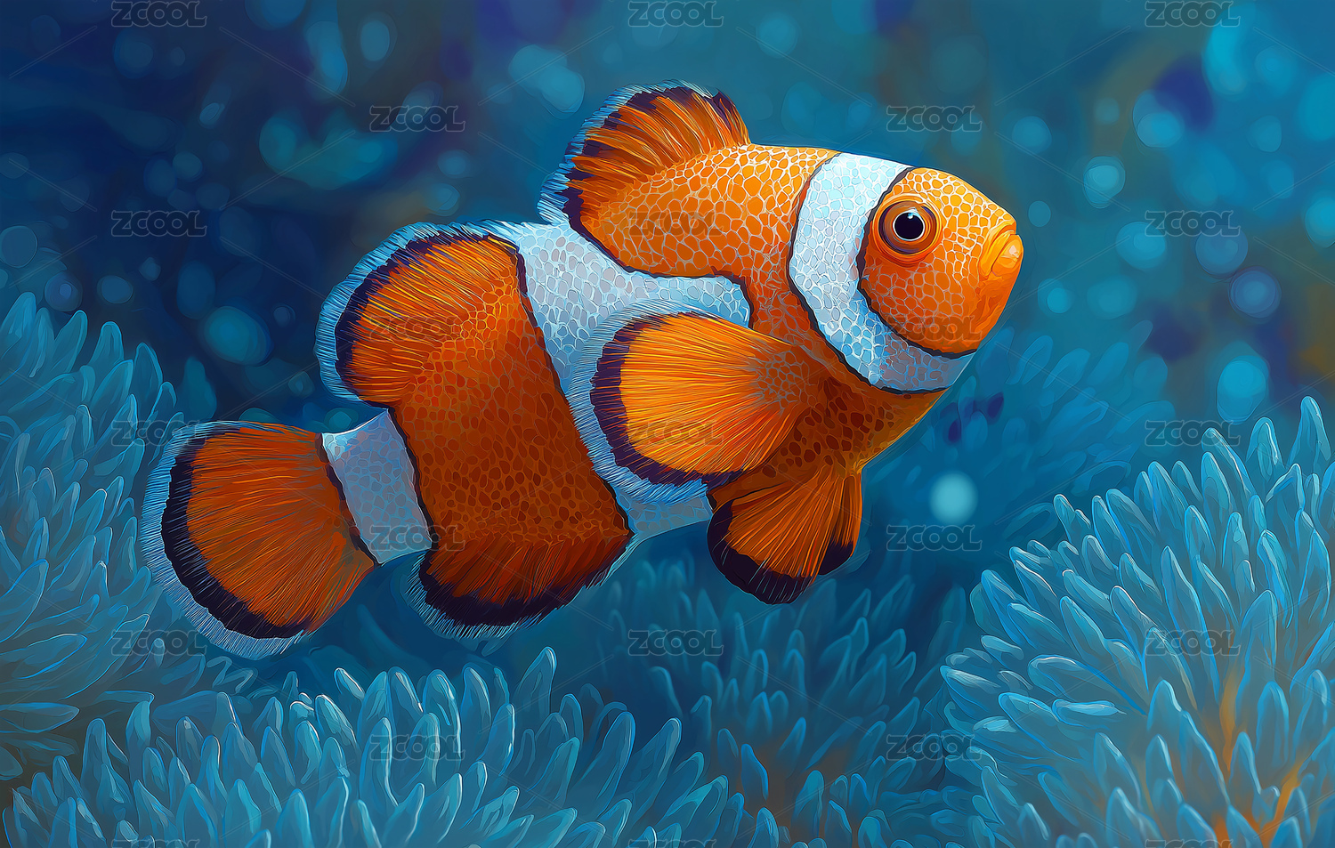 海葵小丑鱼海洋插画装饰设计素材