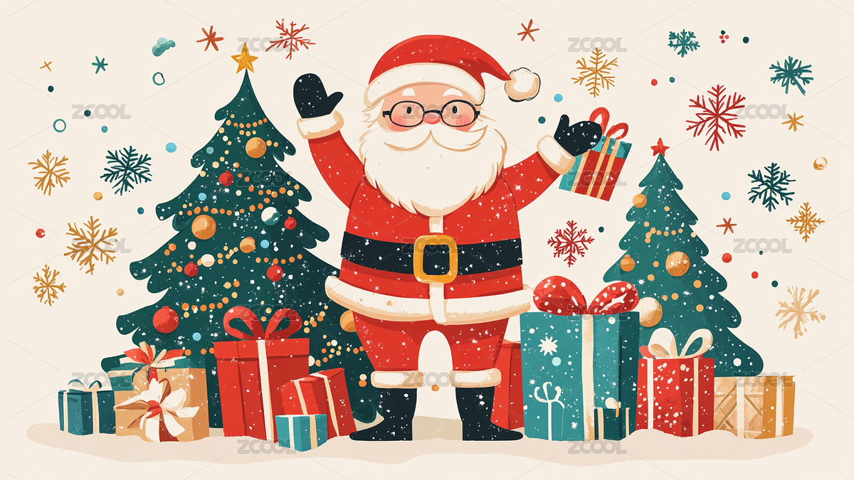 圣诞节,插画,绘画,圣诞老人,圣诞树,节日,礼物