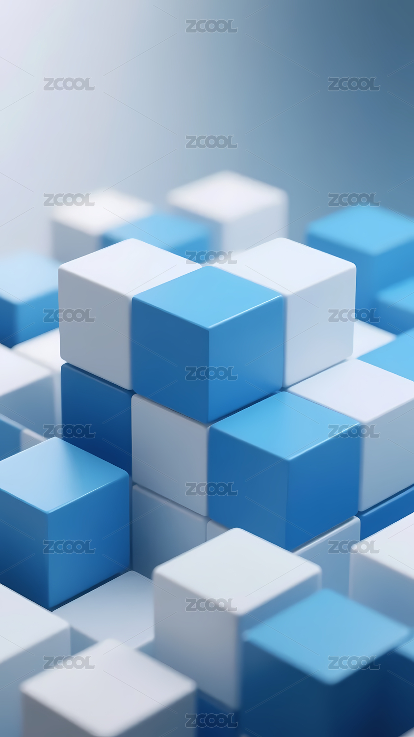 现代,立方体, 蓝色, 橙色, 几何, 形状, 立体, 抽象, 排列, 设计