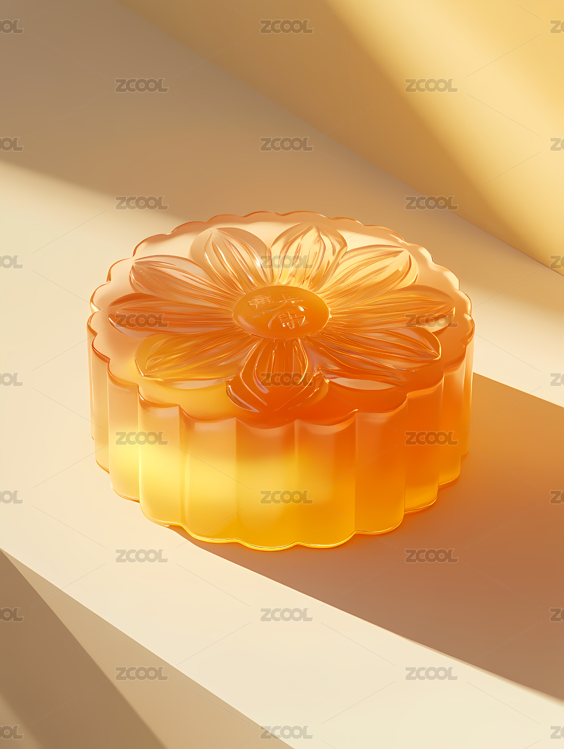一个托盘上有四个月饼里面有一碗果冻高清图