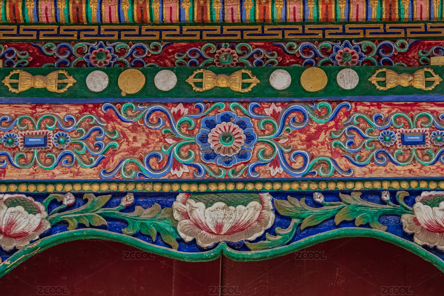 阿坝州康玛尔寺寺庙大门精美的斗拱彩绘