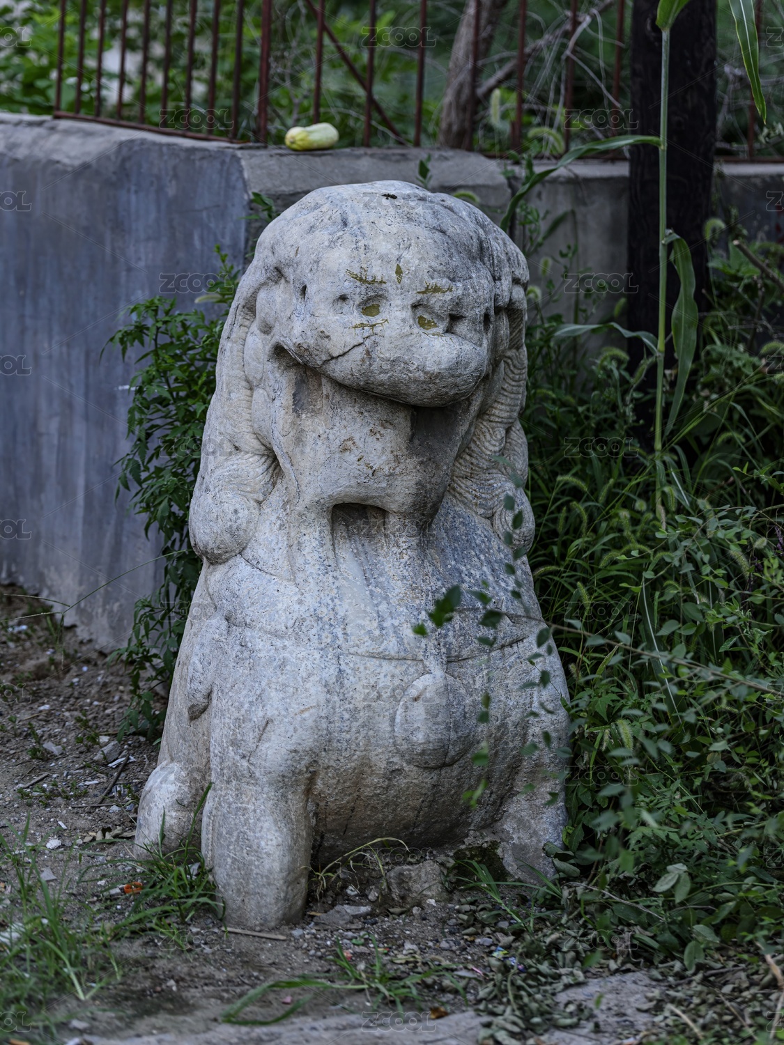 复古庭院一只石狮子