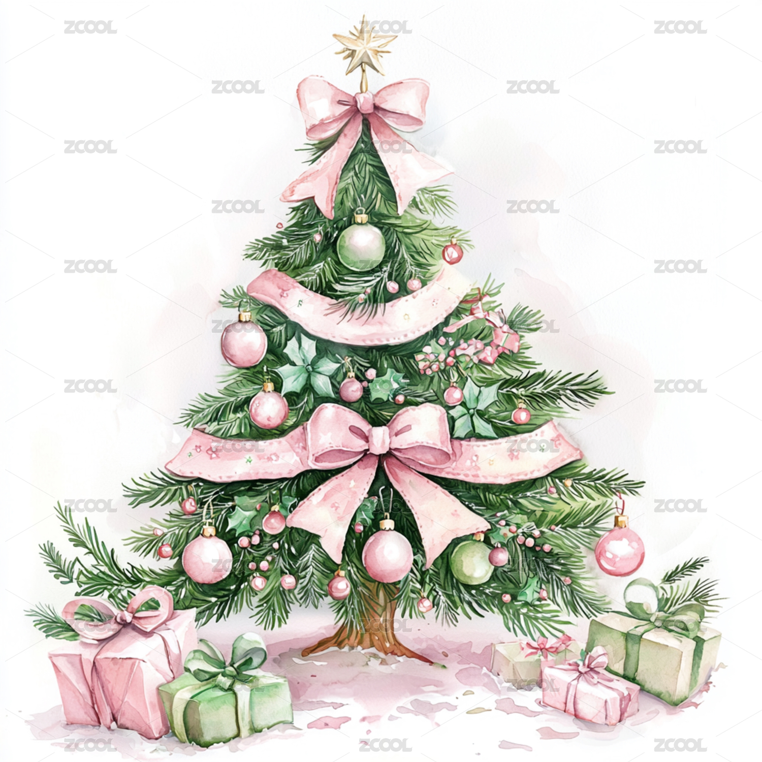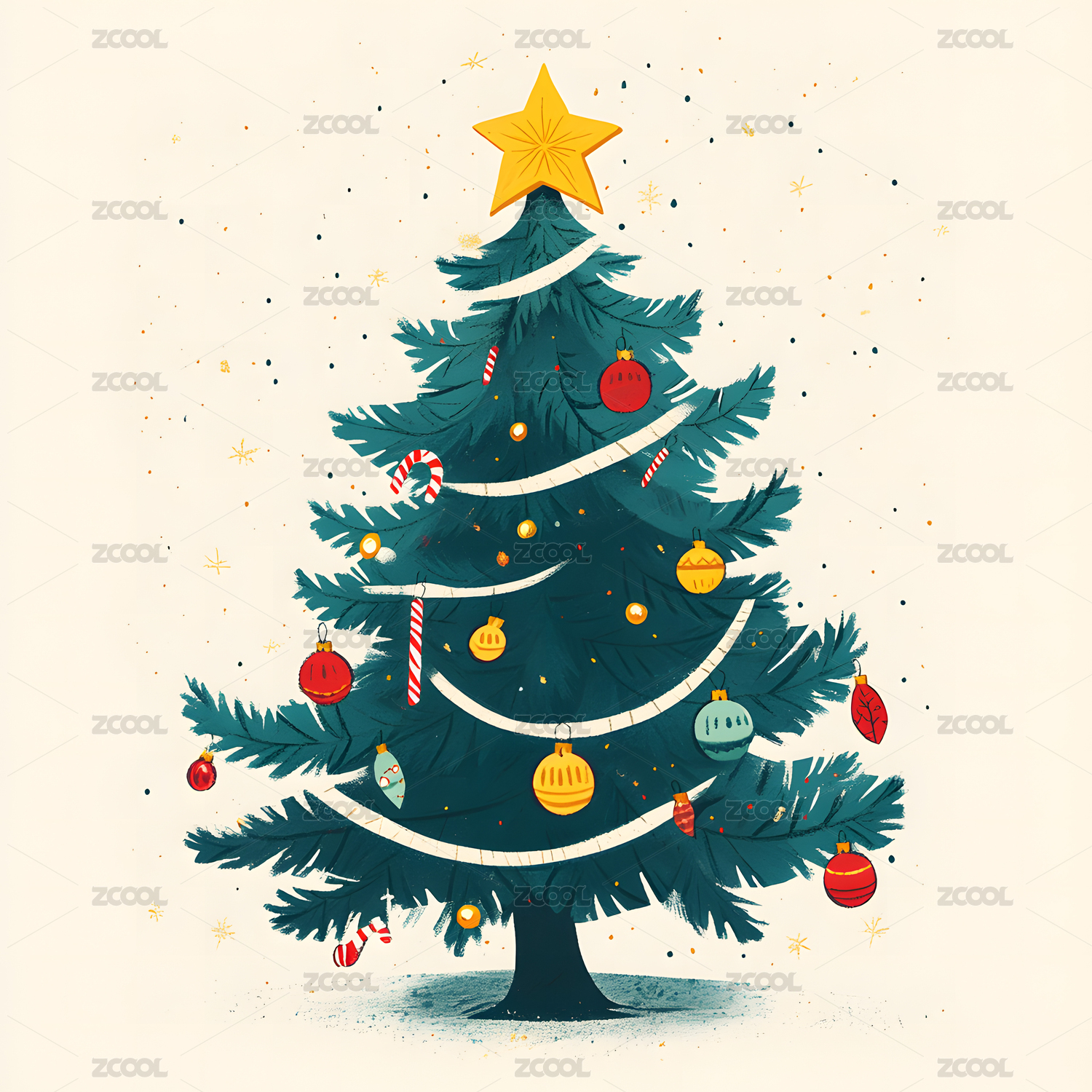 AIGCTA2024,圣诞树,圣诞节,复古风格,彩色