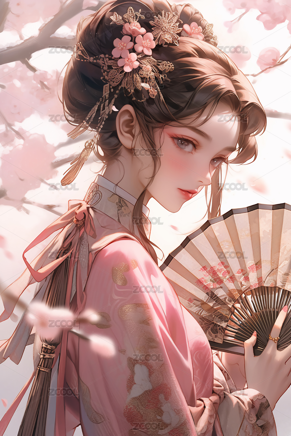 春日樱花仙子古风少女插画