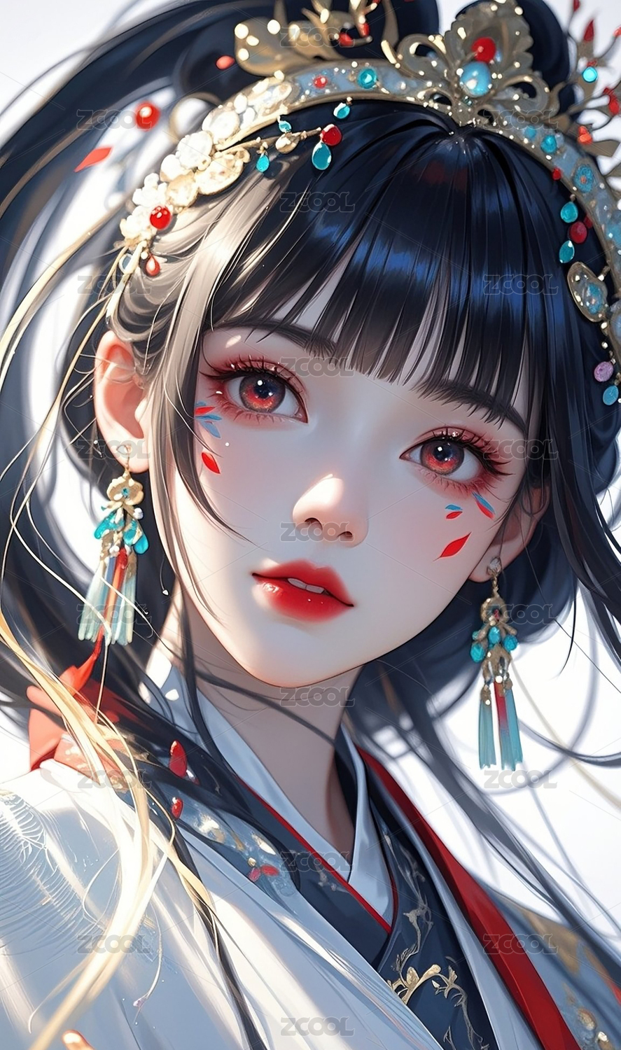 古风女子精致妆容与华丽服饰