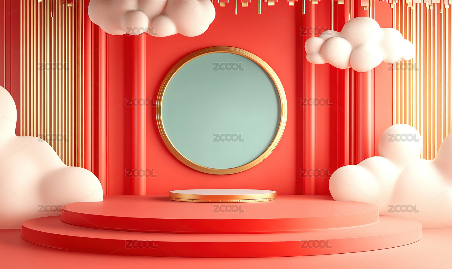 中国风红色背景创意展台