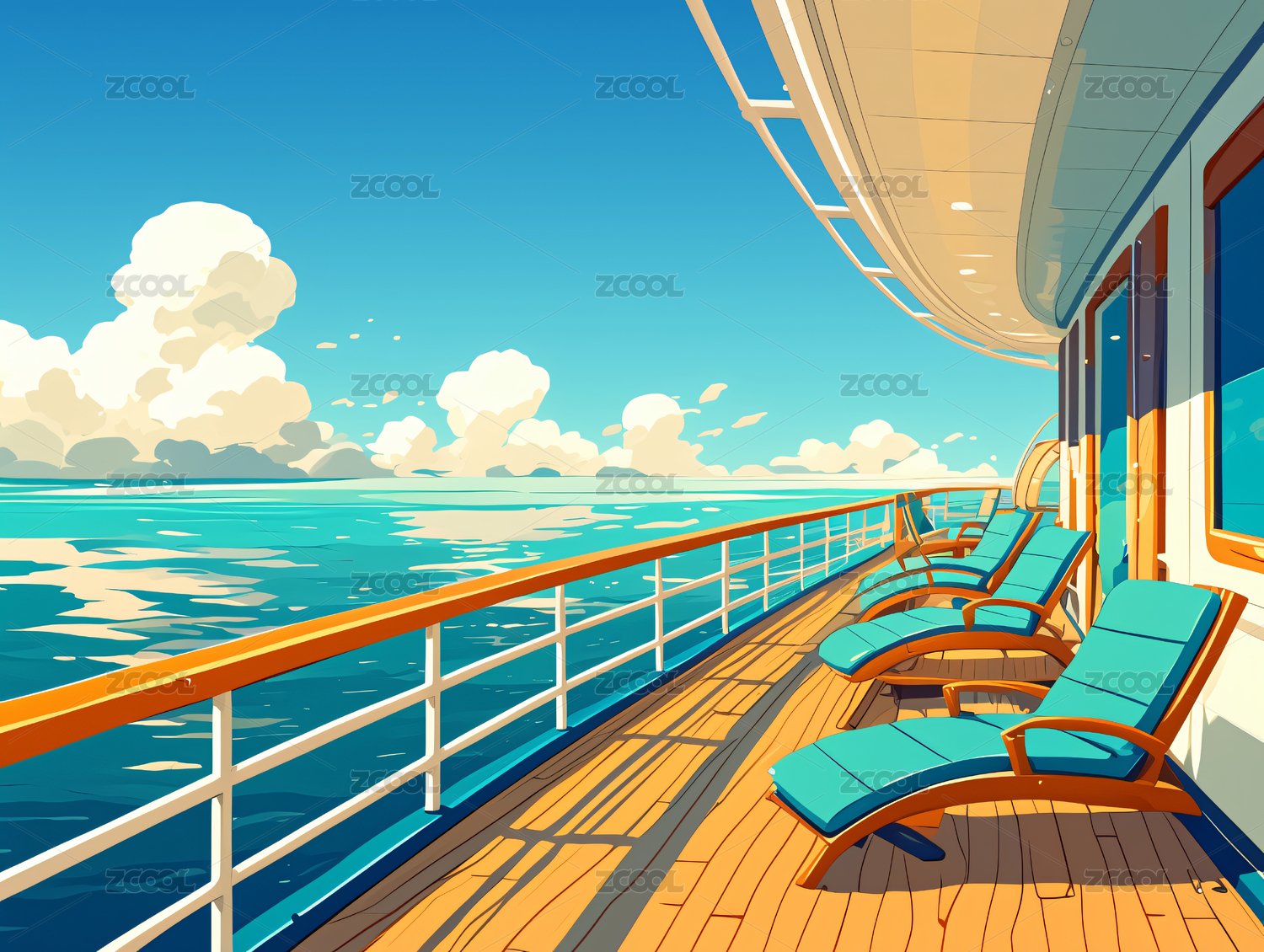 插画,图像,背景,设备用品,航海,旅行,甲板,邮轮,乘客,海上运输