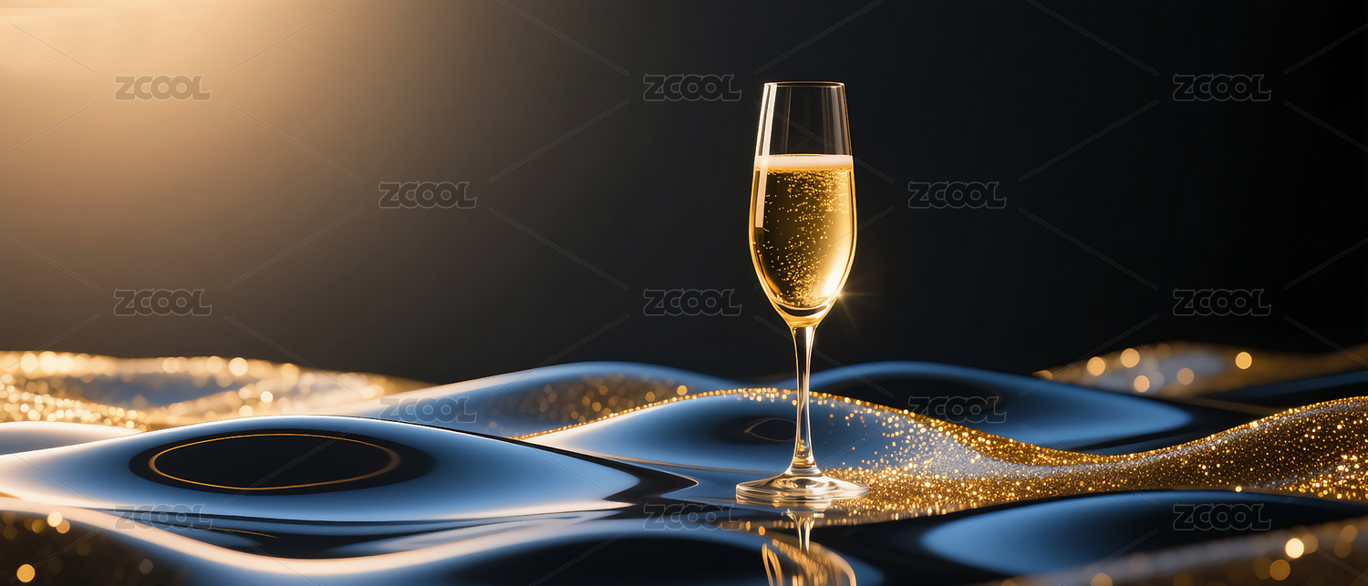 香槟酒杯与金色流光