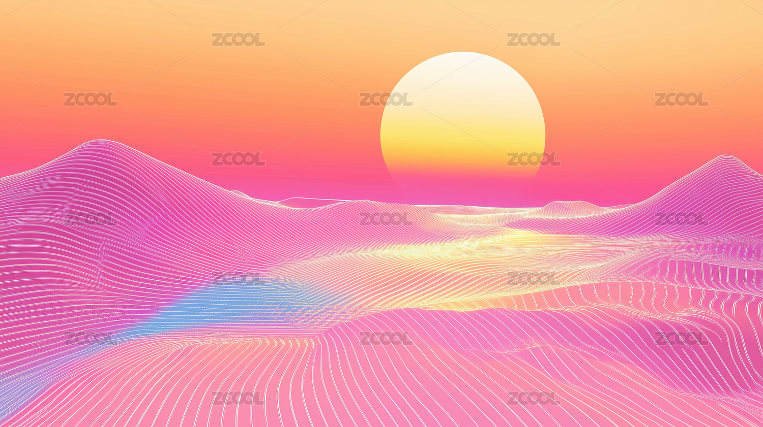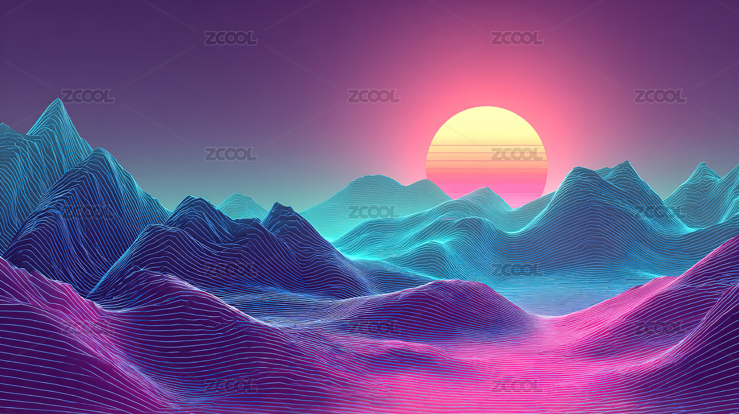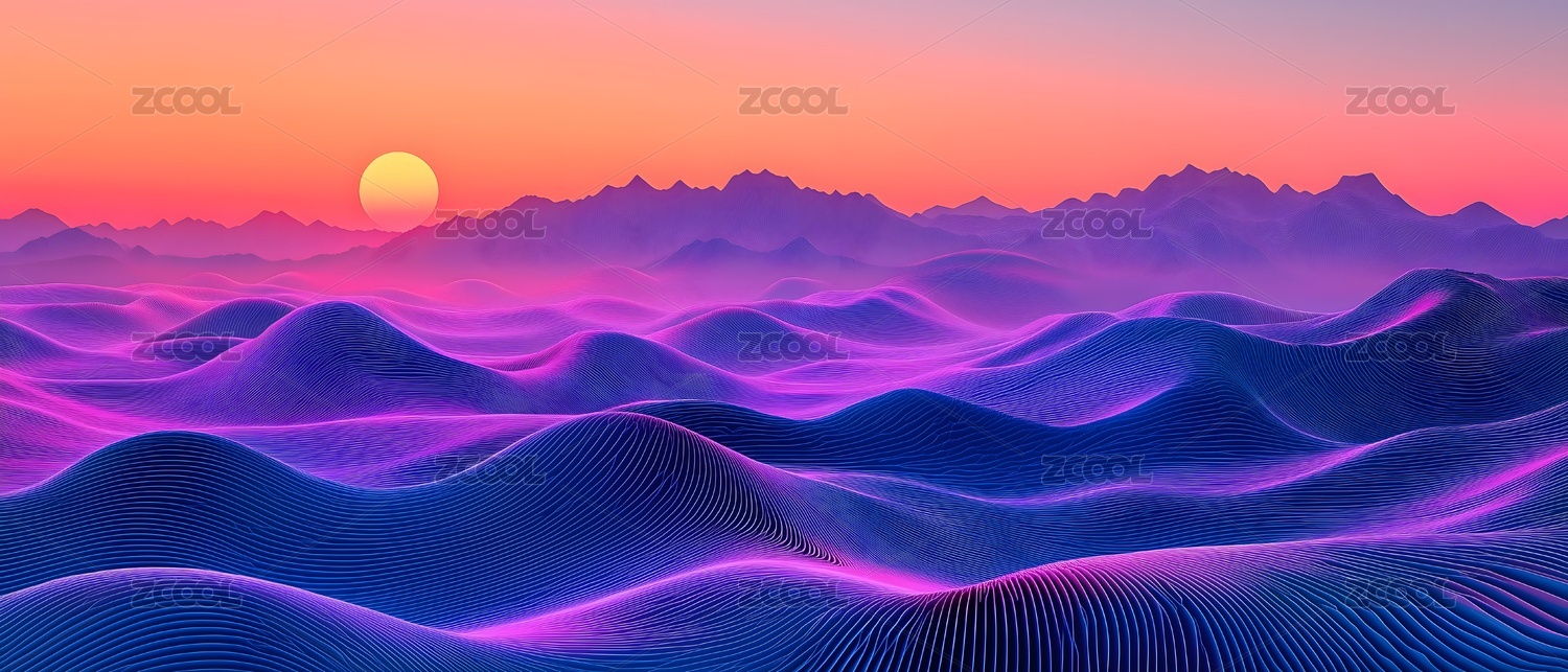 霓虹山峦与落日