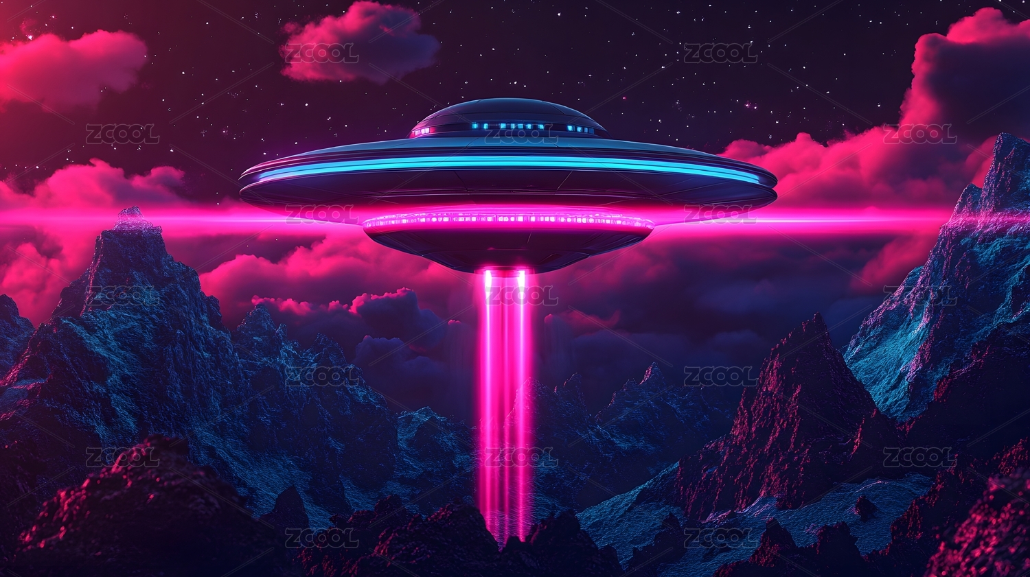 夜幕下的飞碟降临景象