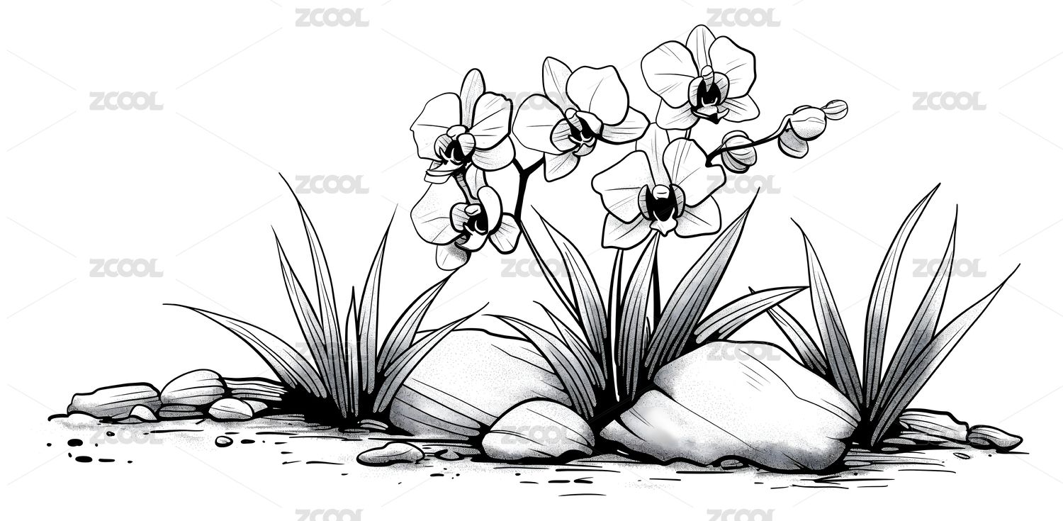 插画,抽象,风景,和谐,黑白艺术,花瓣,花卉,静谧,美丽,生动