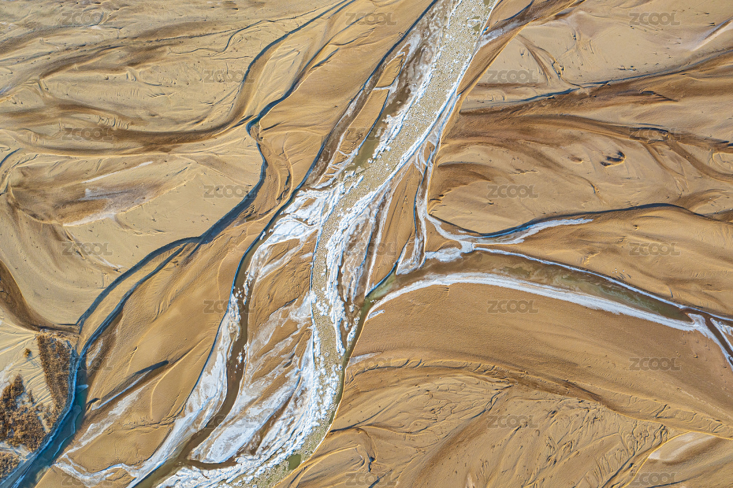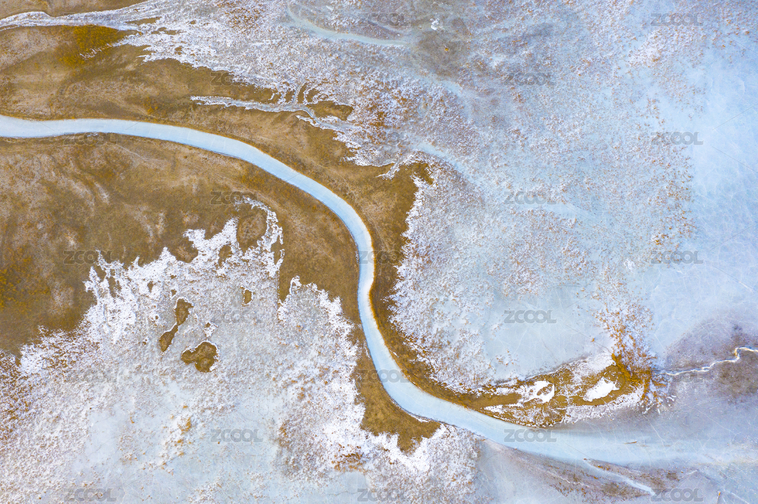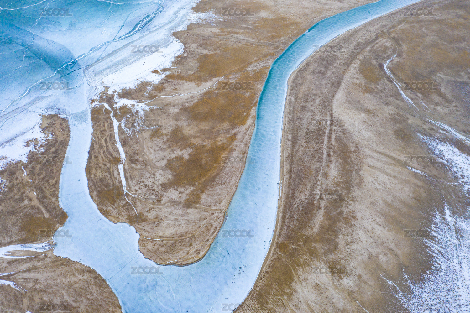 航拍冰冻的河流