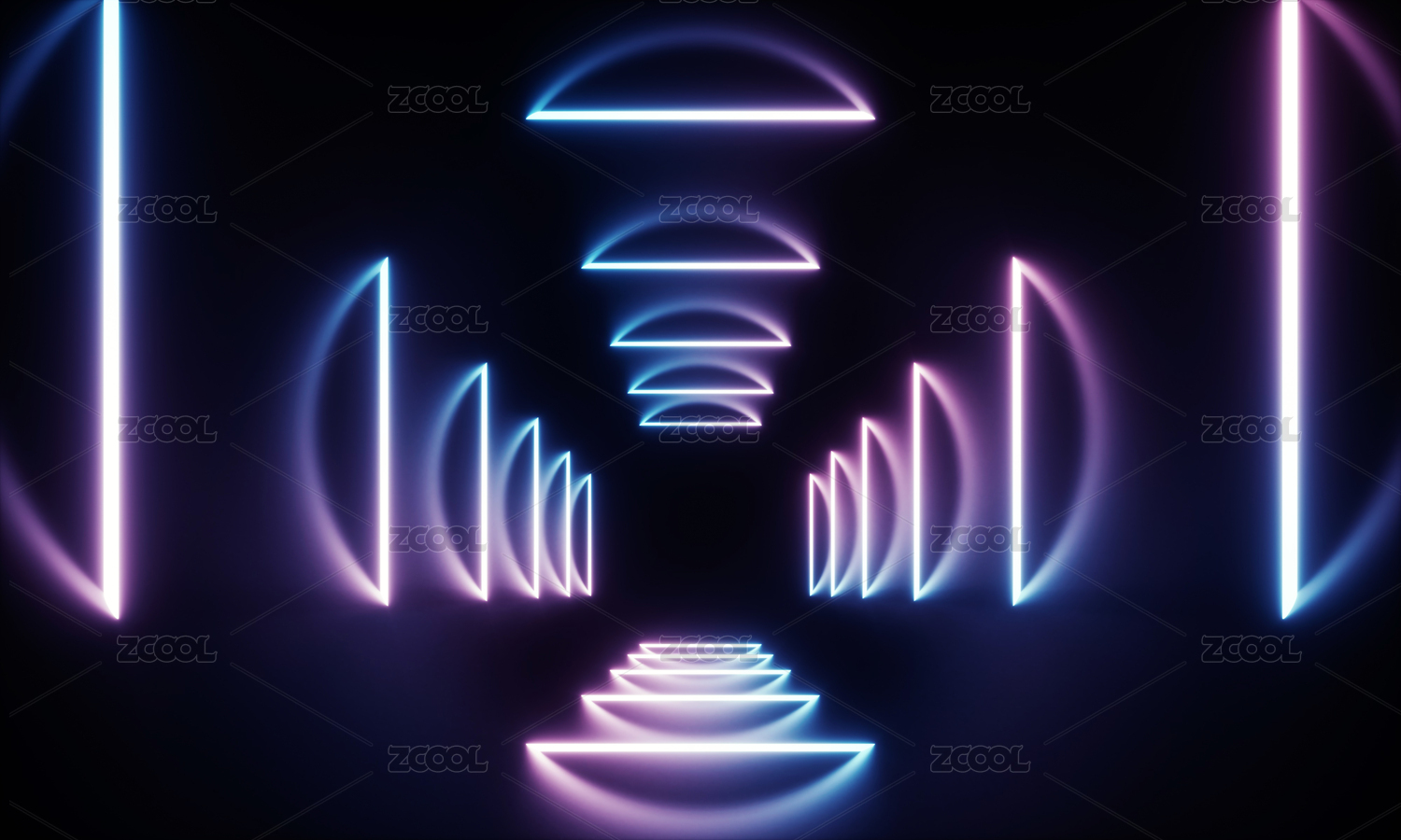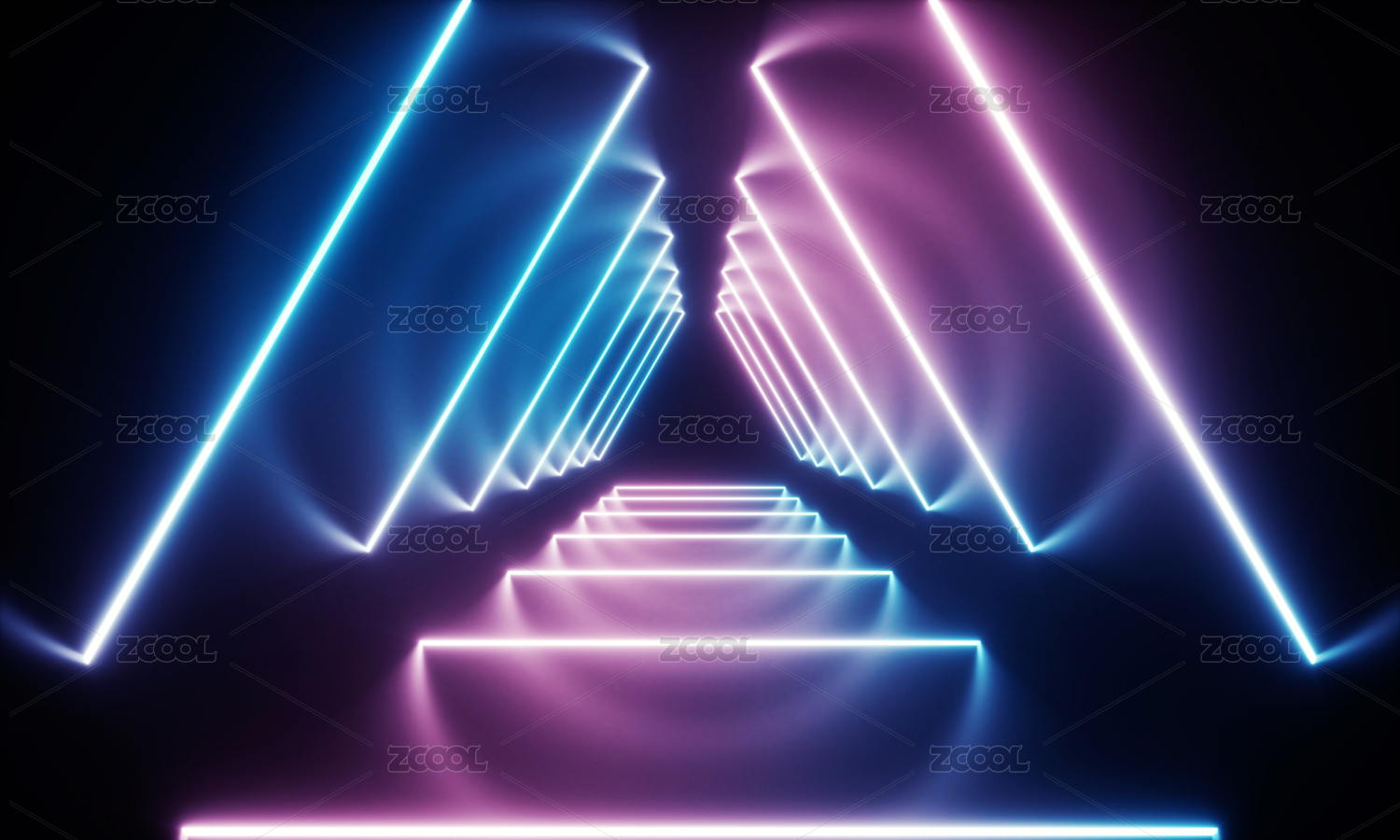 蓝粉霓虹三角隧道