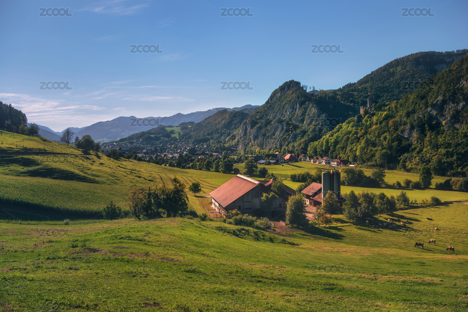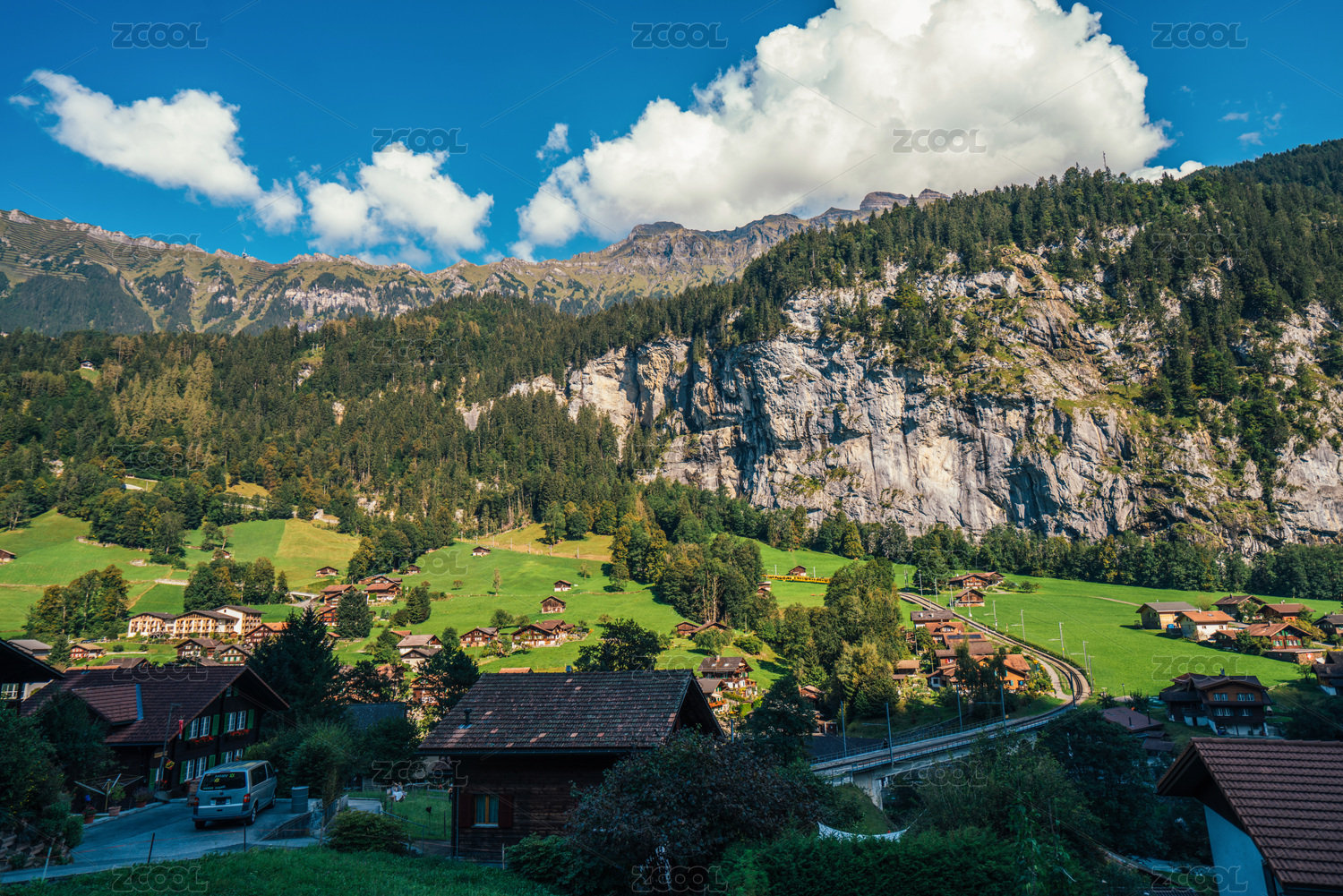 瑞士山间小镇劳特布龙嫩,阿尔卑斯山脚下