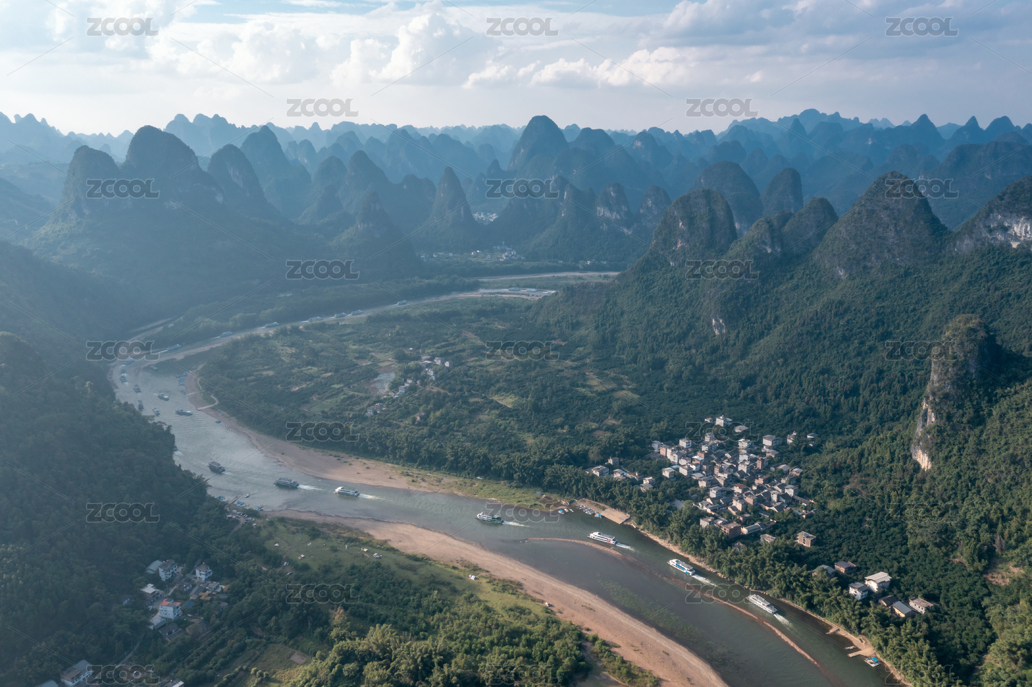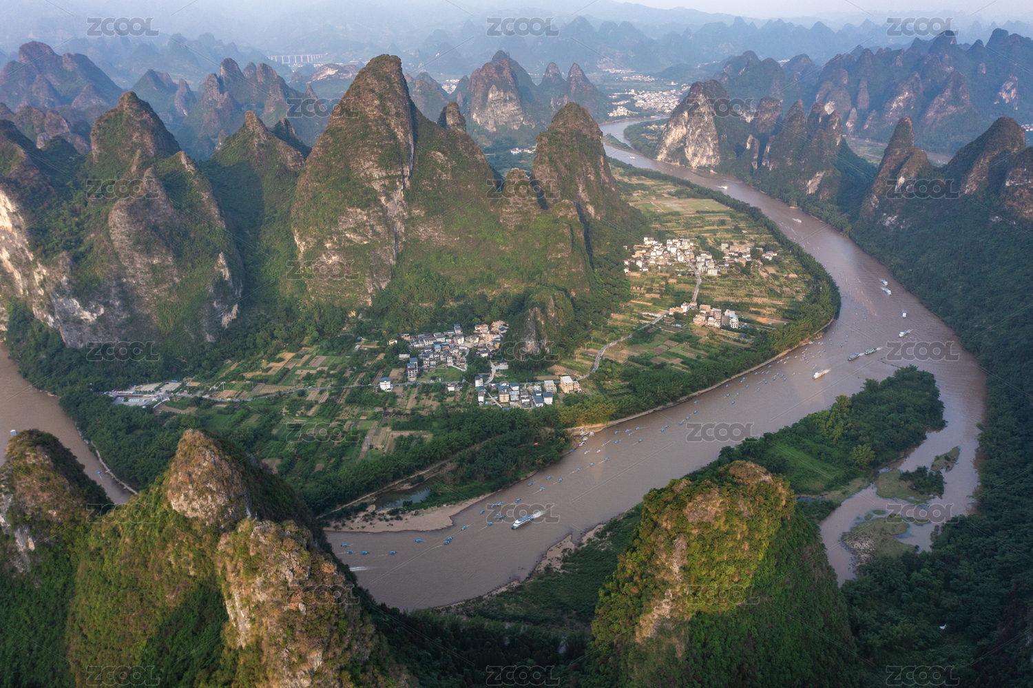 广西阳朔漓江航拍