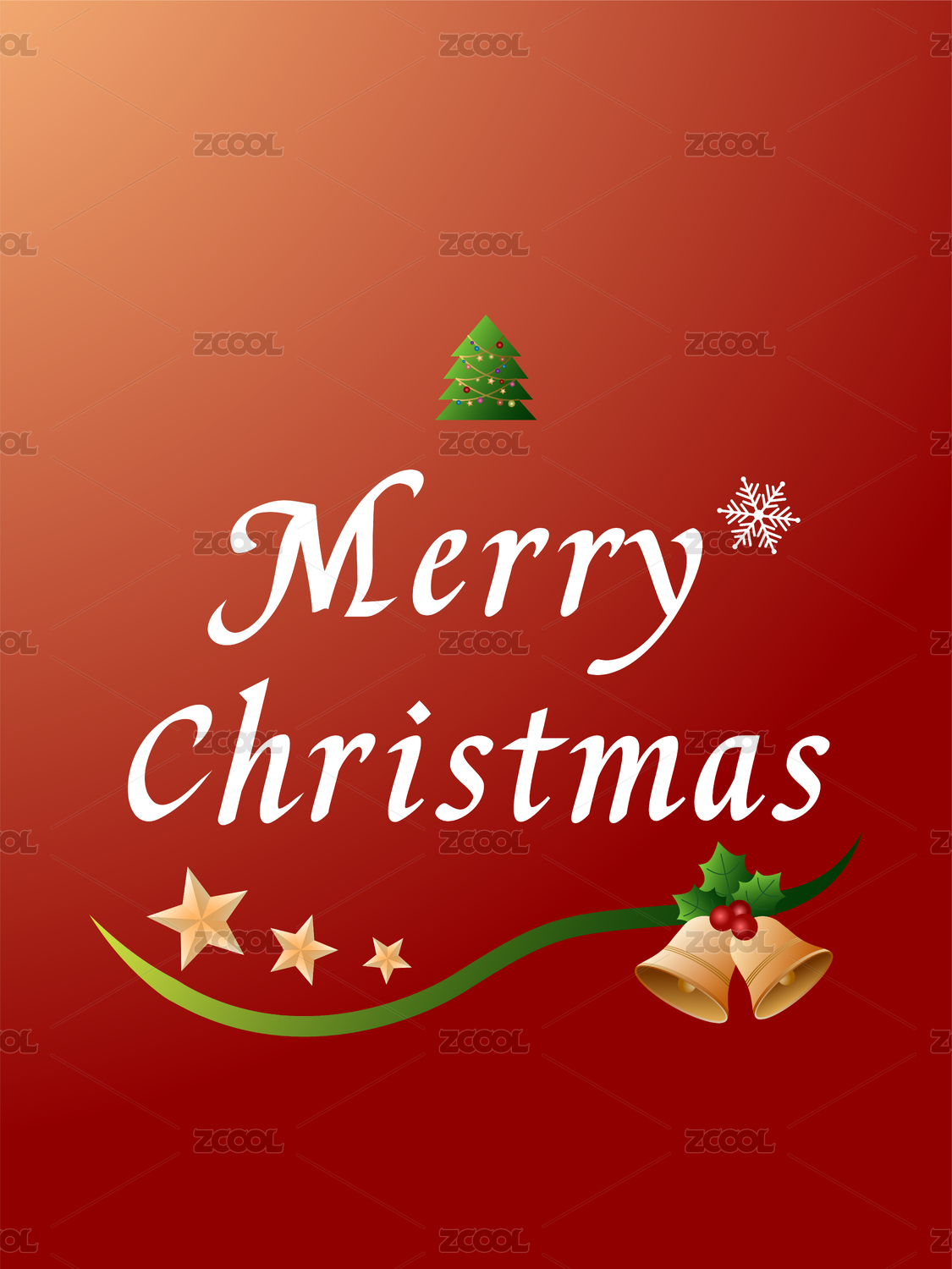 圣诞快乐贺卡红色背景被圣诞树星星铃铛装饰