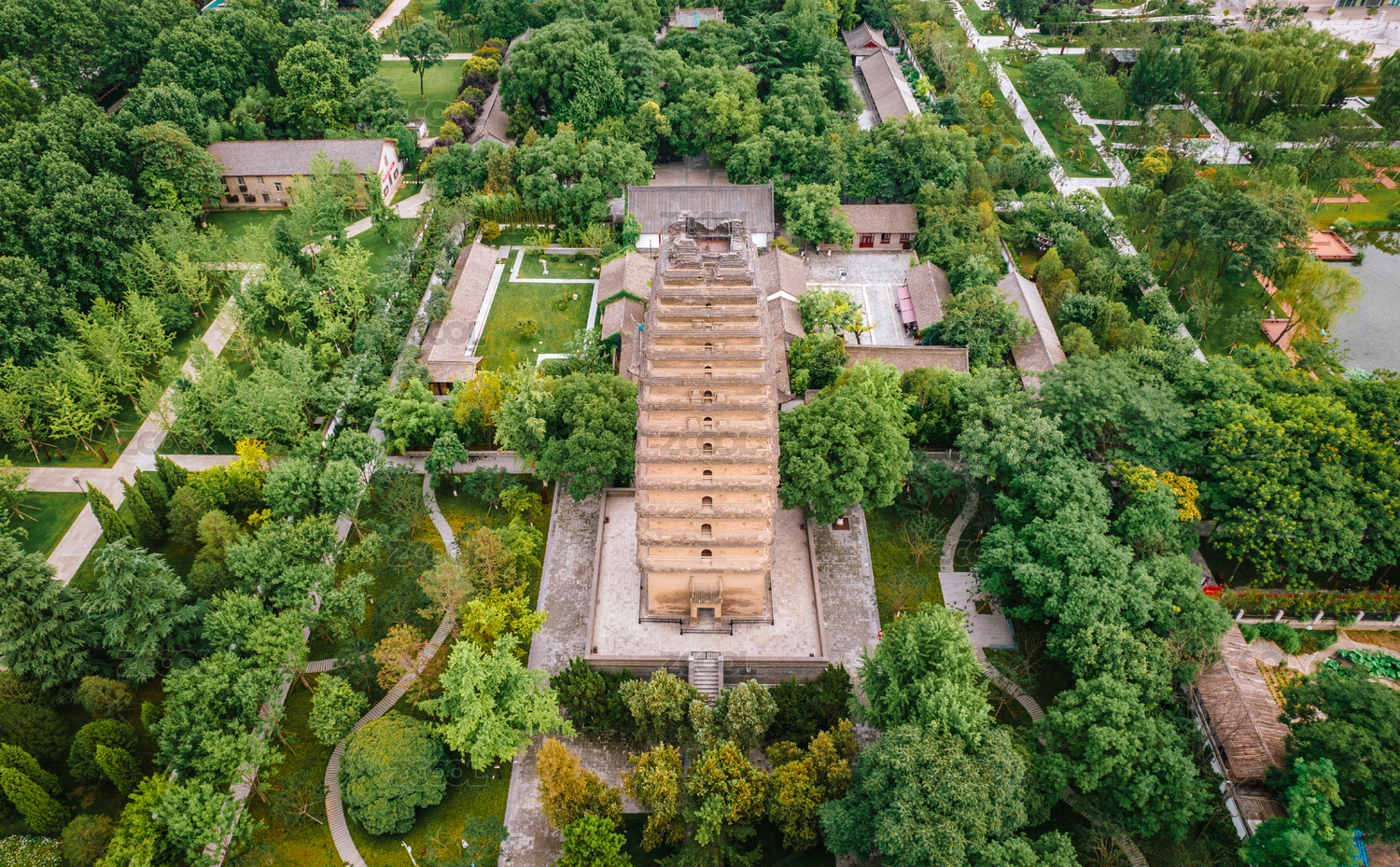 小雁塔,航拍,鸟瞰,秋天,历史,城市,西安,西安博物院,夕阳,文化遗产