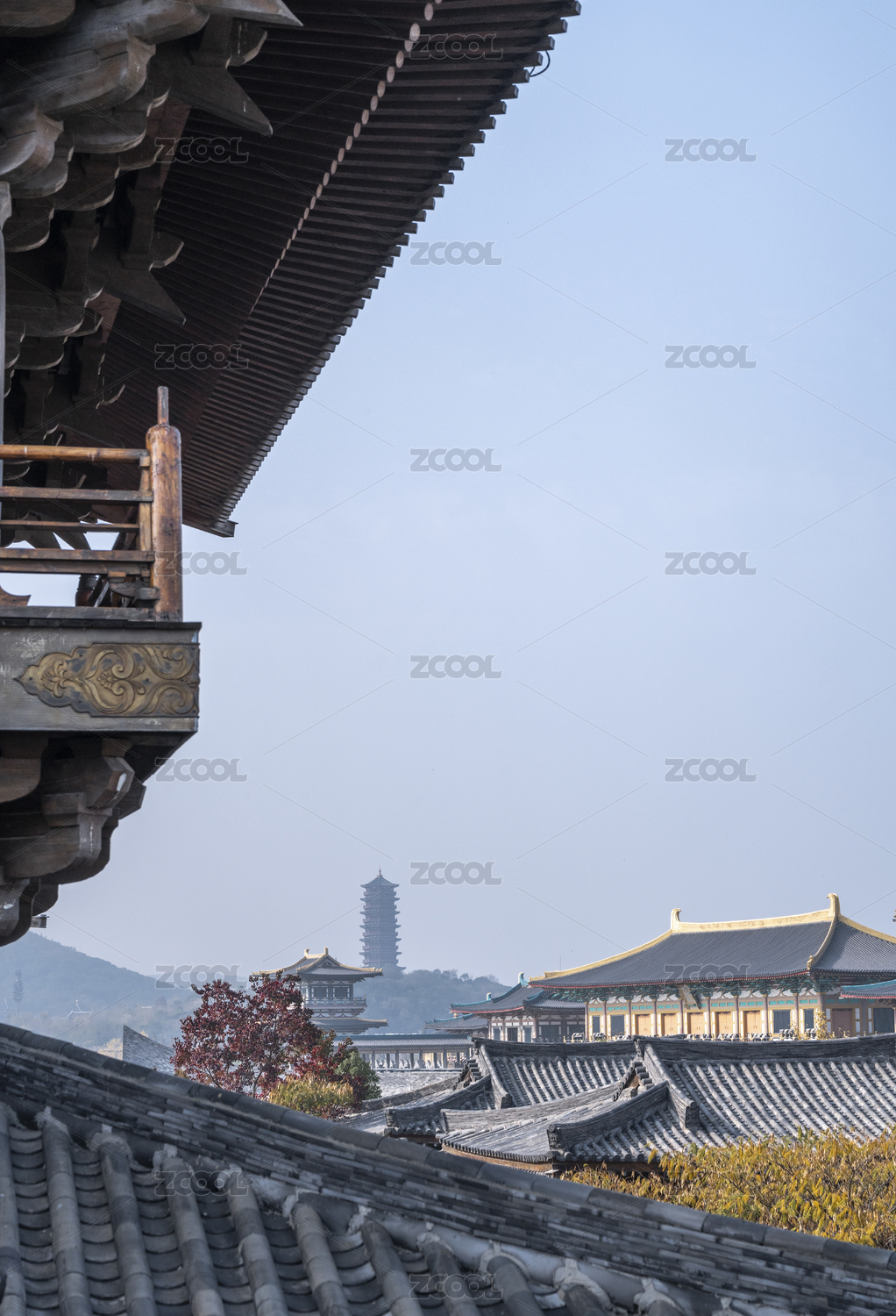 秋天俯瞰中国扬州大明寺景区的园林古建筑