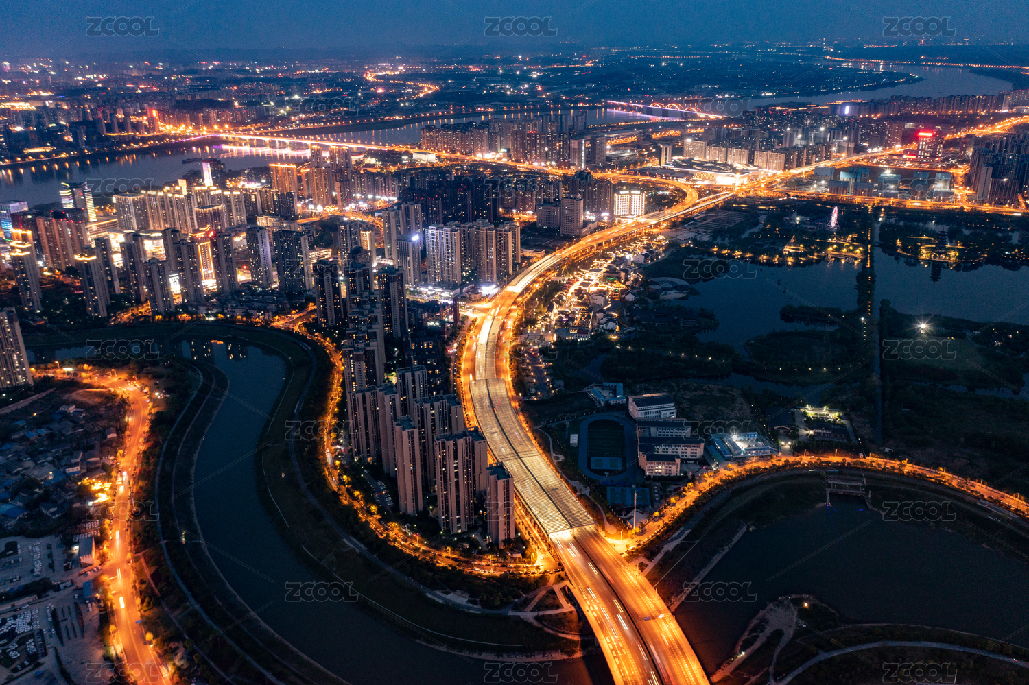 航拍长沙湘江银盆岭大桥城市夜景风光