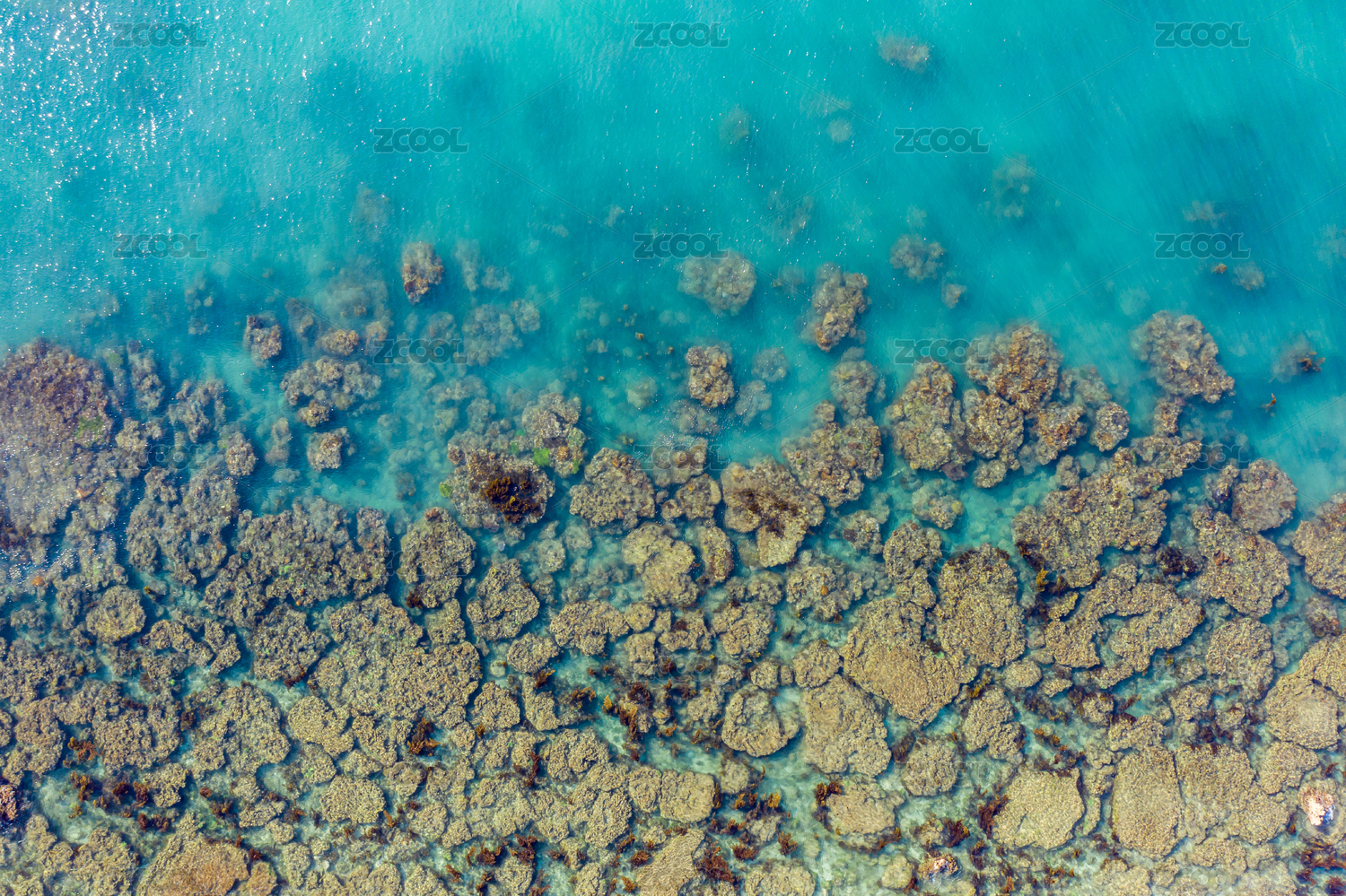 航拍海南三亚西岛周边海域近海海底珊瑚礁石