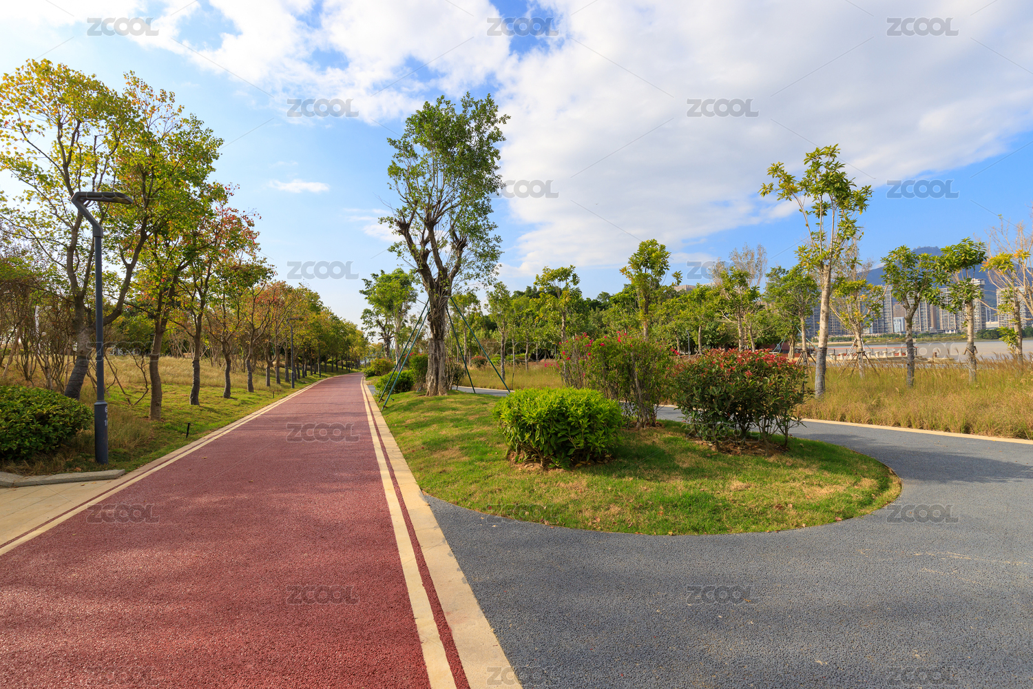 公园里的红色道路