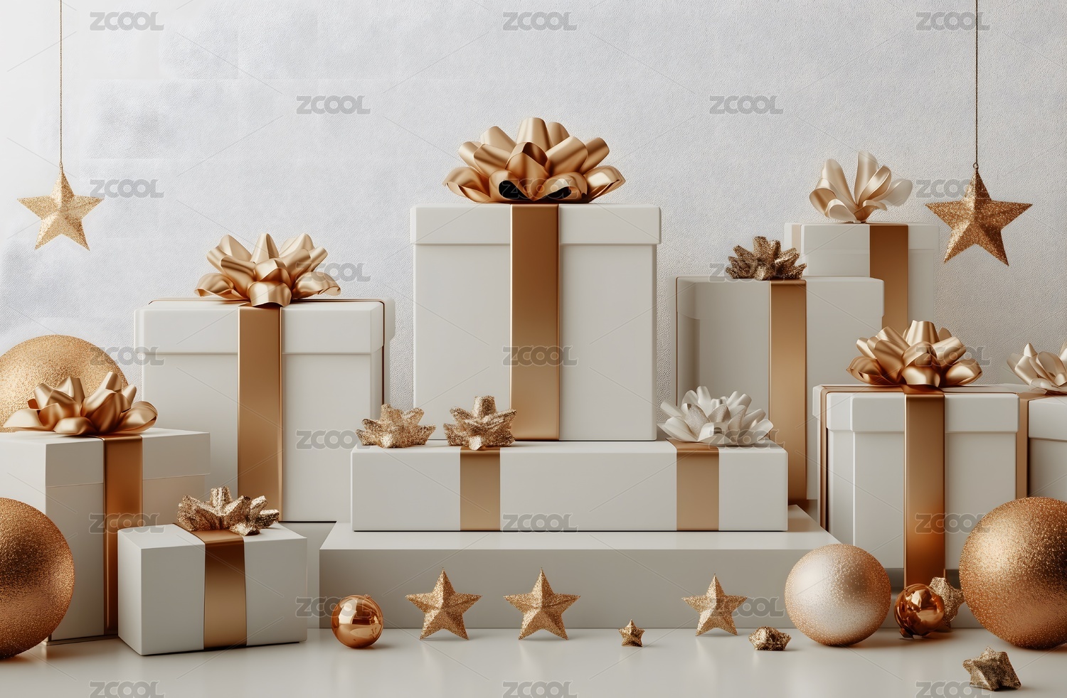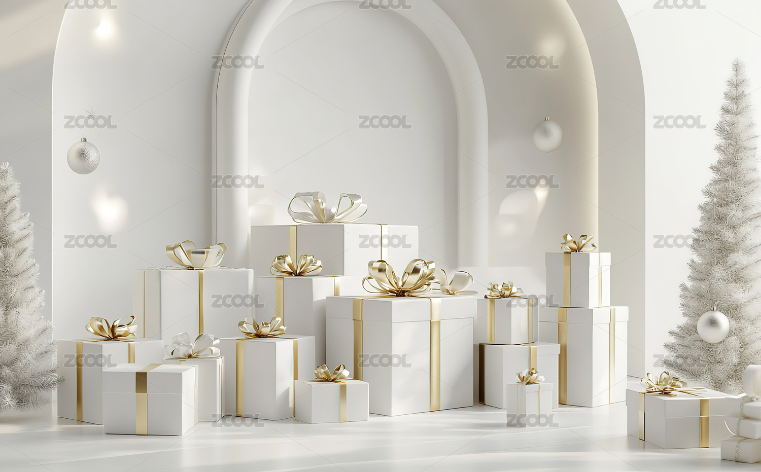 彩球和白色礼盒组合