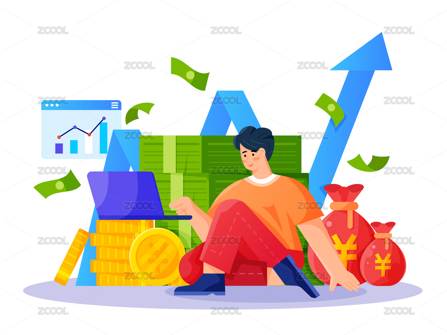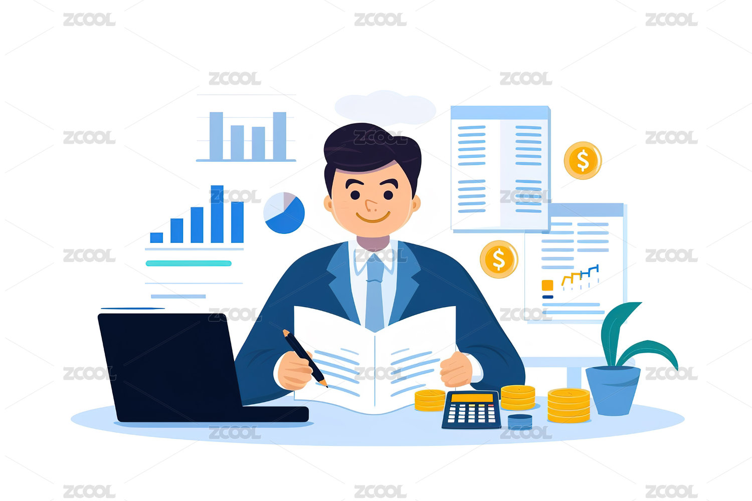 金融顾问专家,扁平矢量人物场景创意概念插画