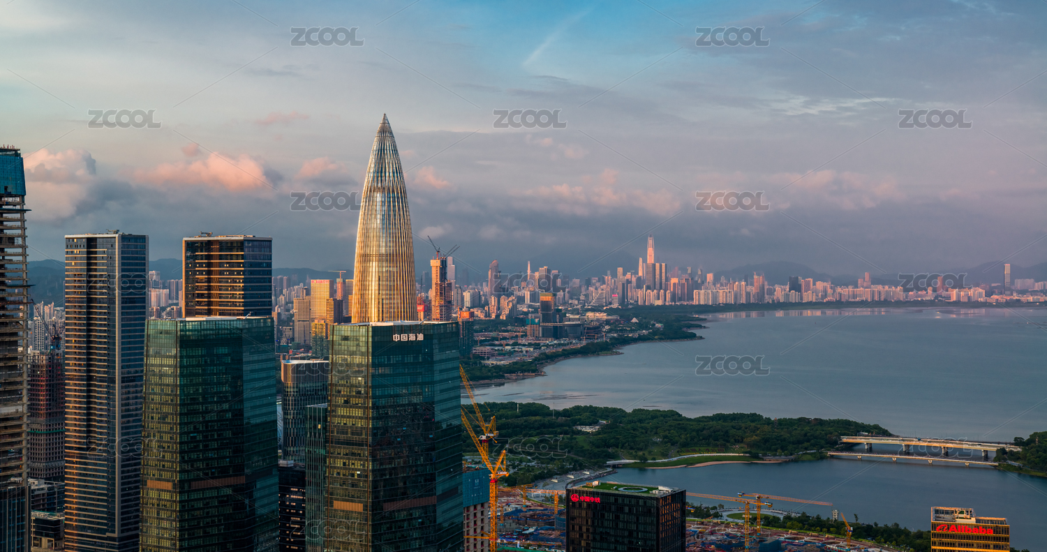 清晨的深圳后海海岸线高楼景观