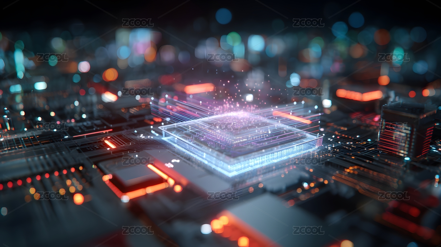 芯片金融科技赛博朋克人工智能三维渲染电路