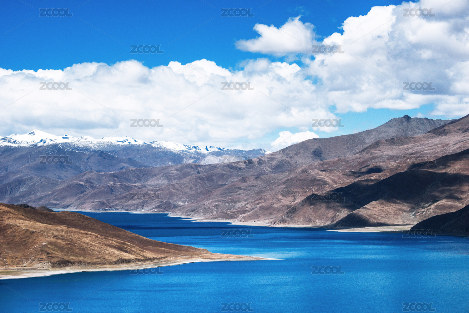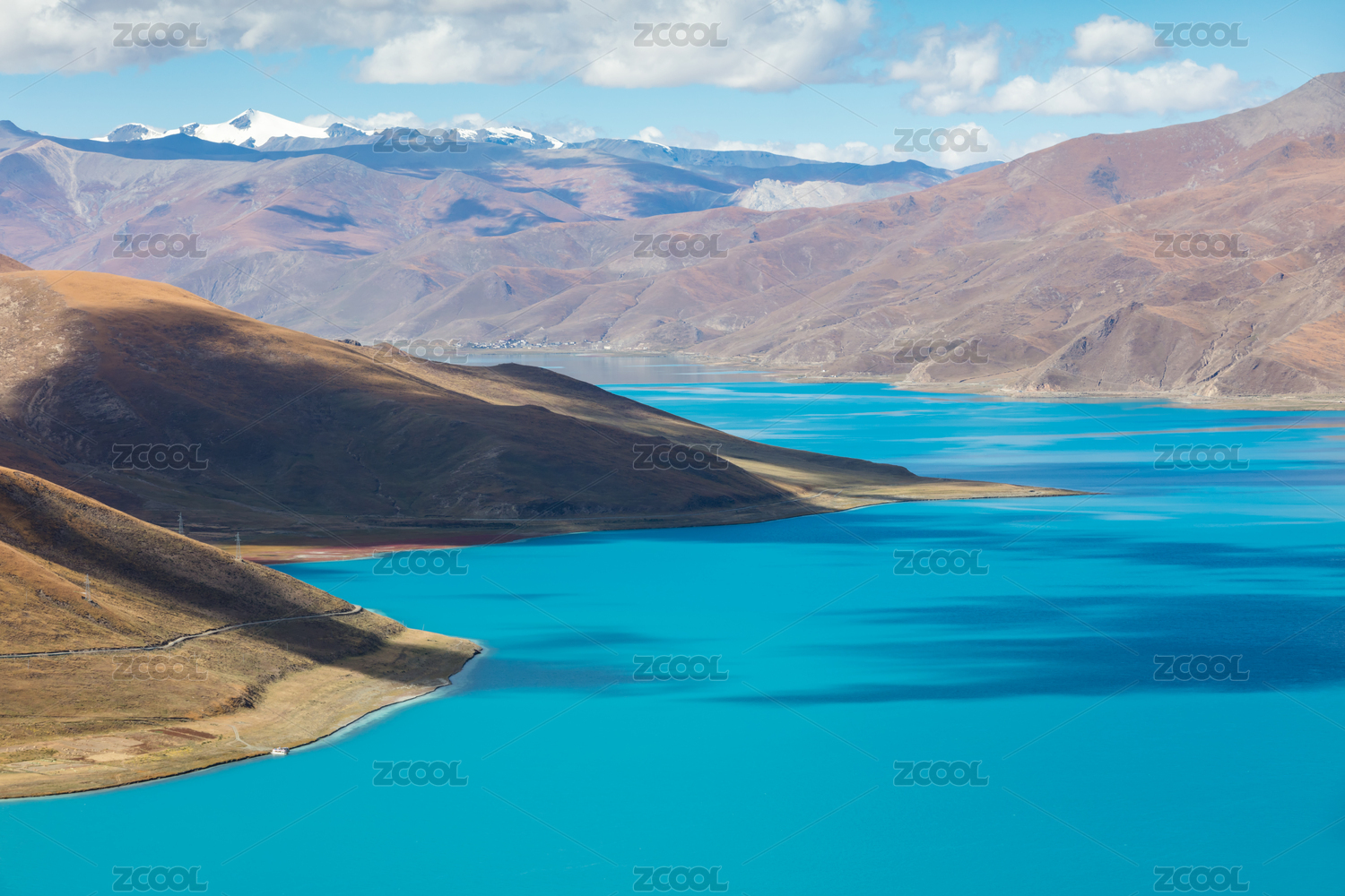 中国西藏高原雪山湖泊羊卓雍措自然风光