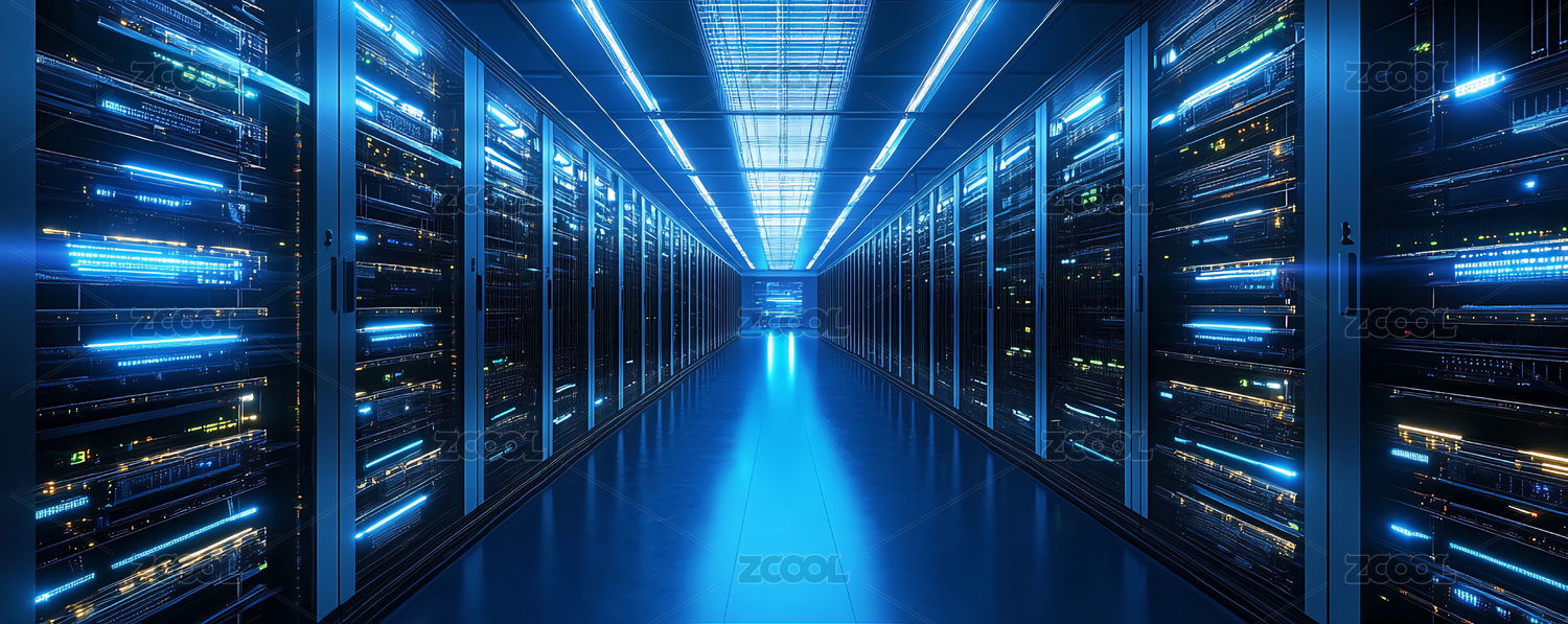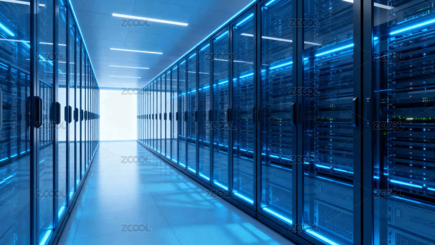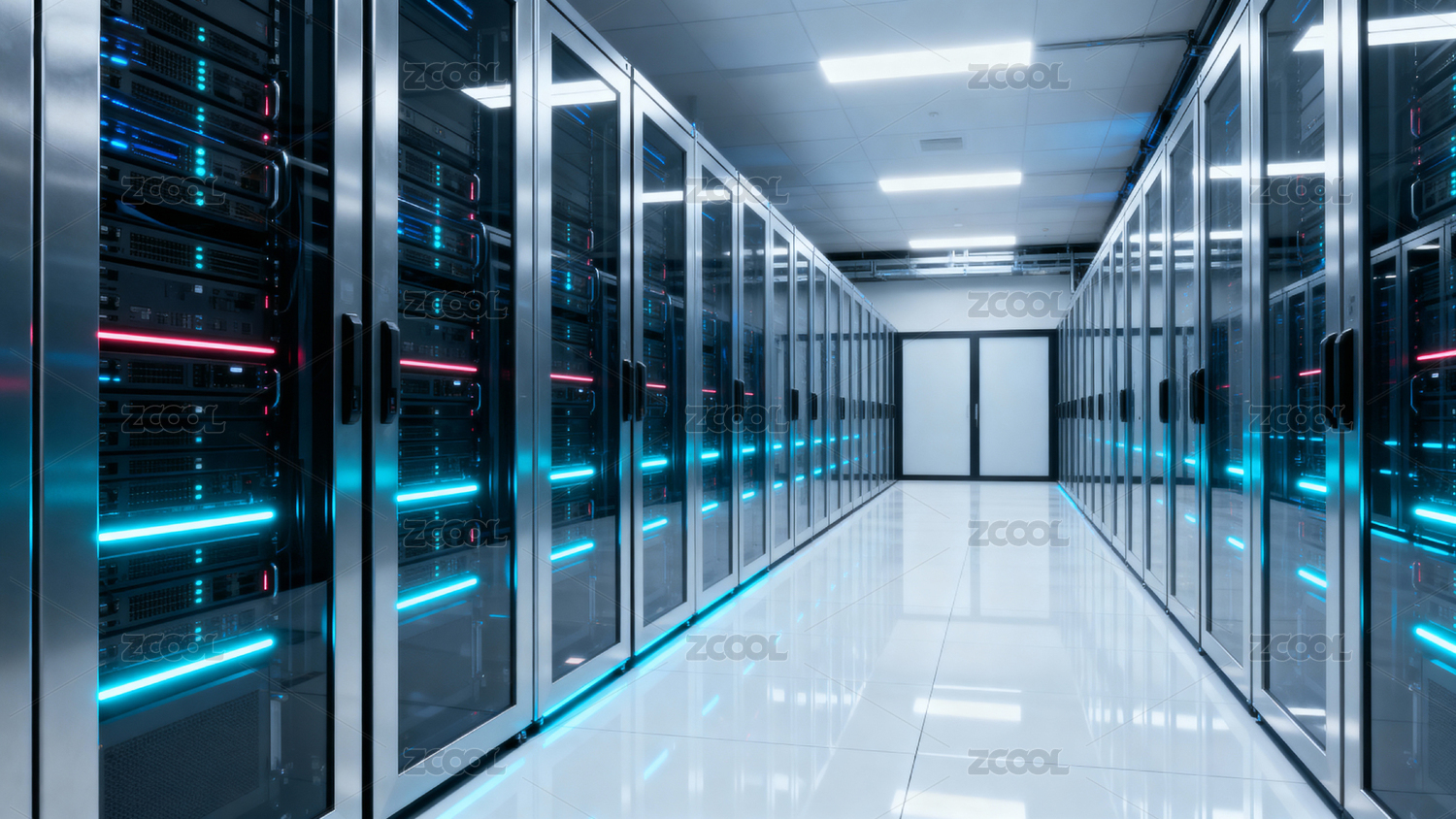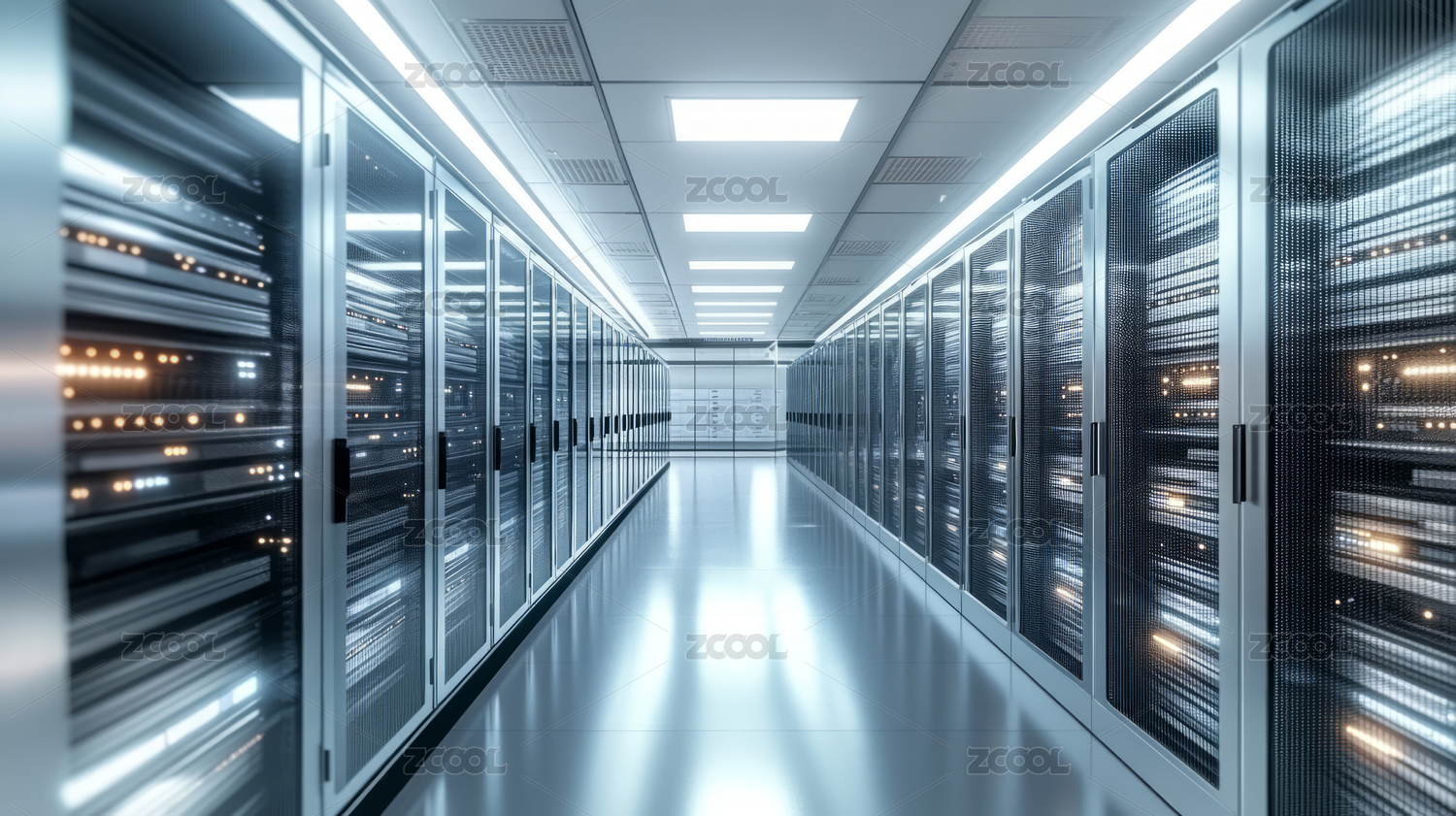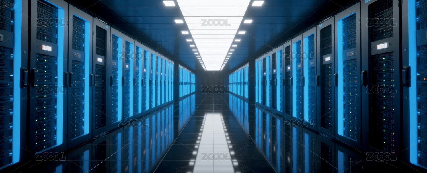 三维渲染的现代化高科技的服务器机房,强大的数据库和运算存储能力。