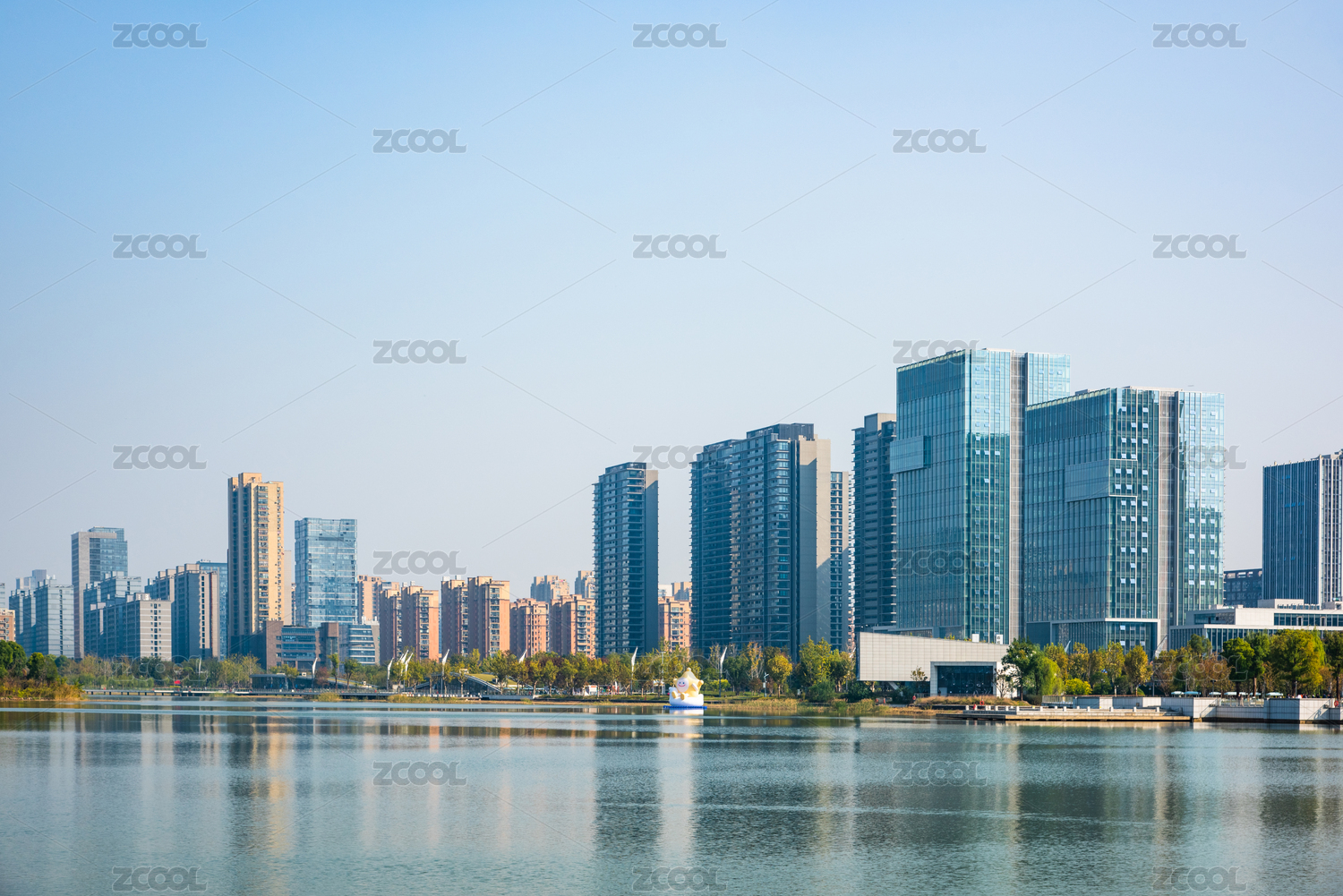 浙江杭州钱塘区大江东东沙湖公园畔建筑风景