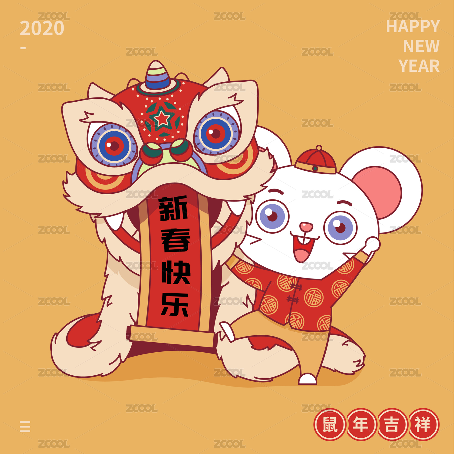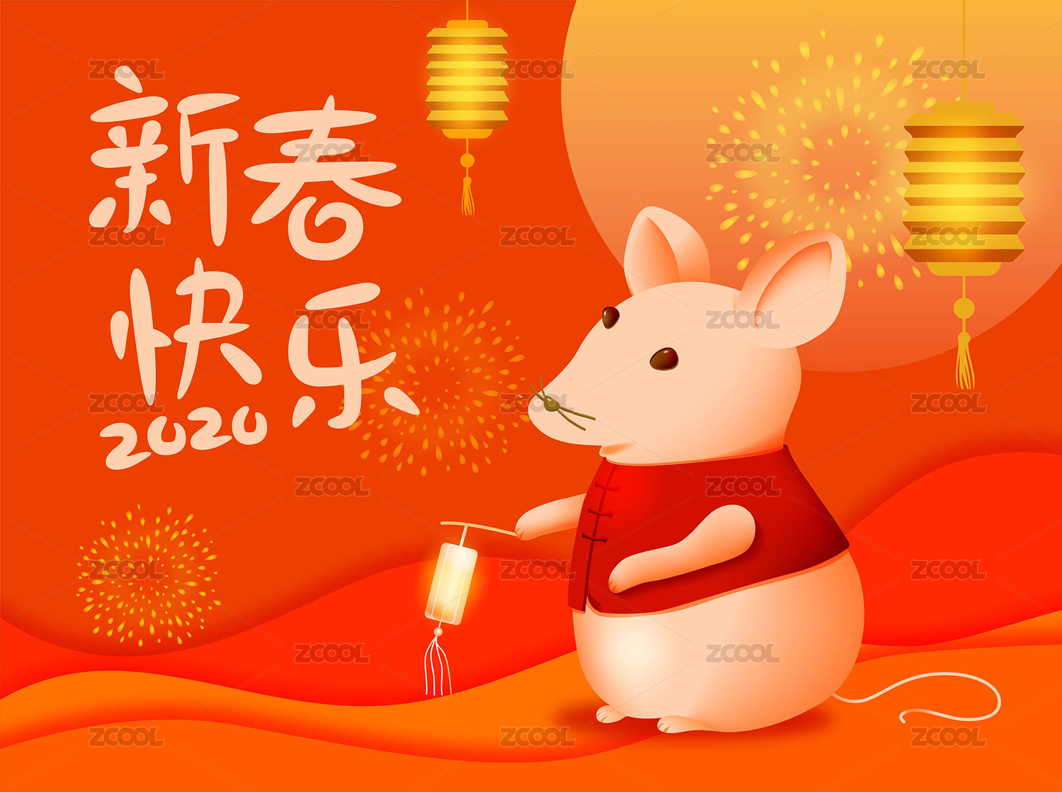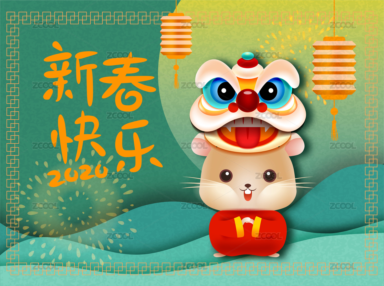舞狮,老鼠,拜年,新春,灯笼,2020,HEBTHXC,新年快乐,烟花,复古