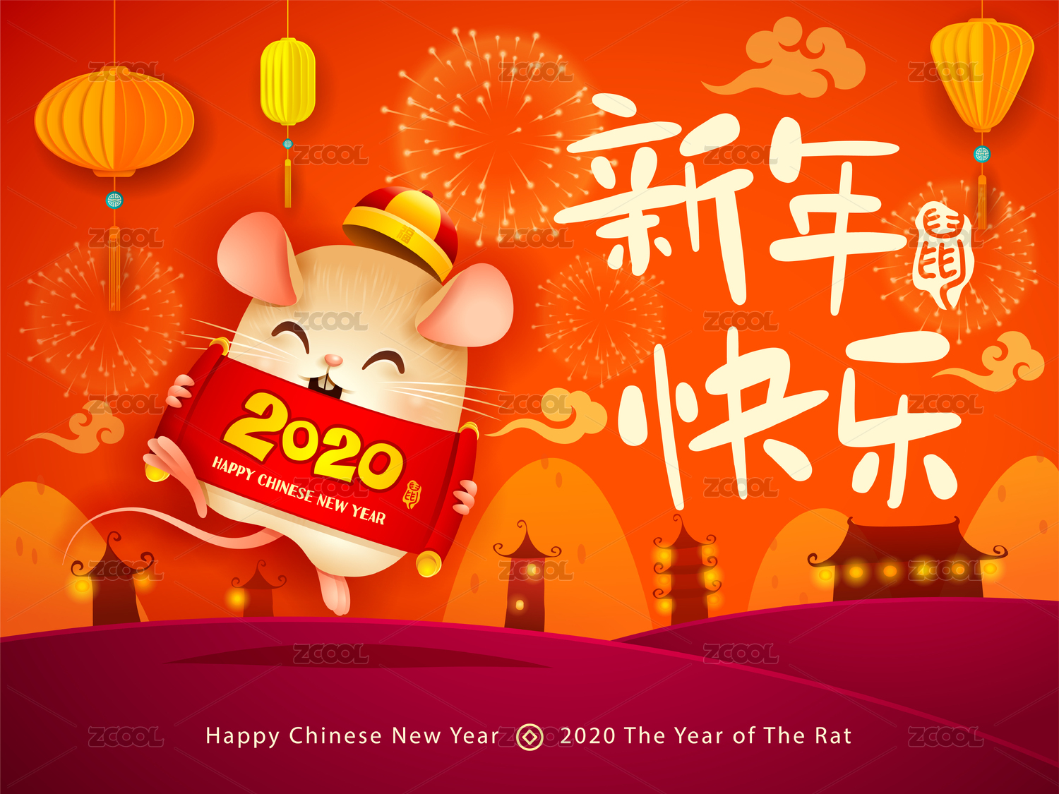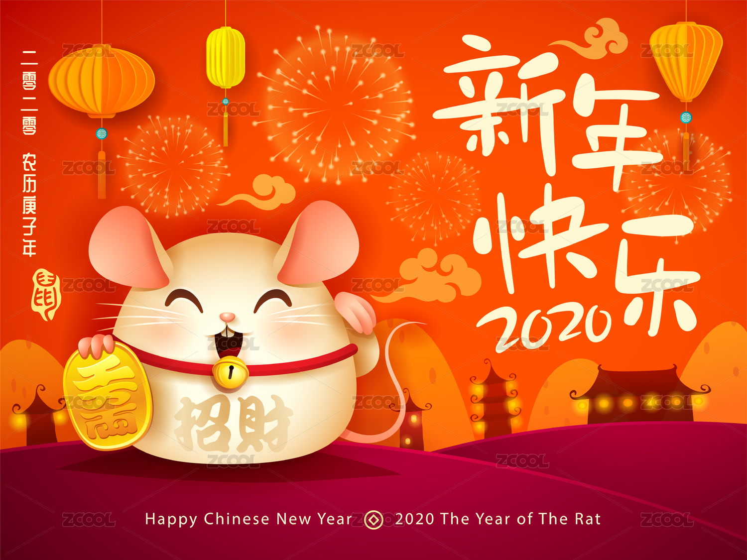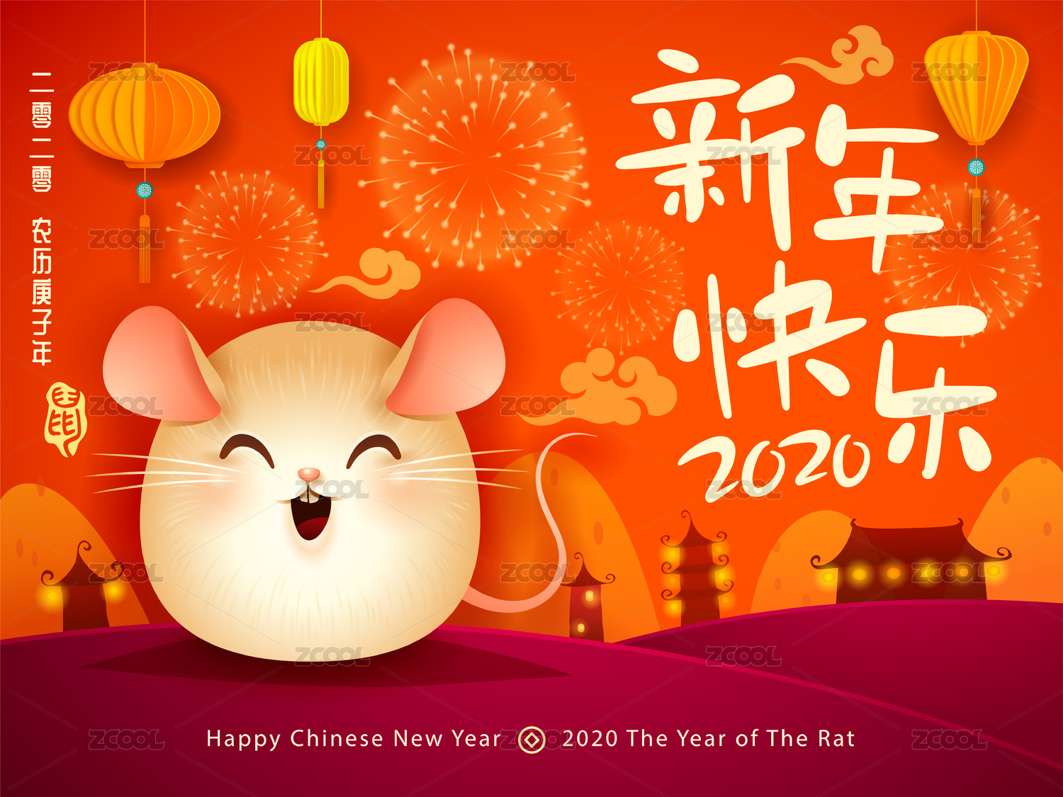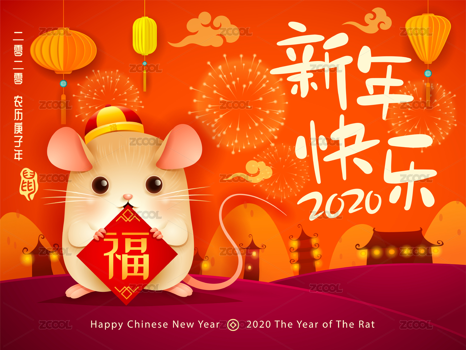 舞狮,老鼠,拜年,新春,灯笼,2020,HEBTHXC,新年快乐,烟花,复古