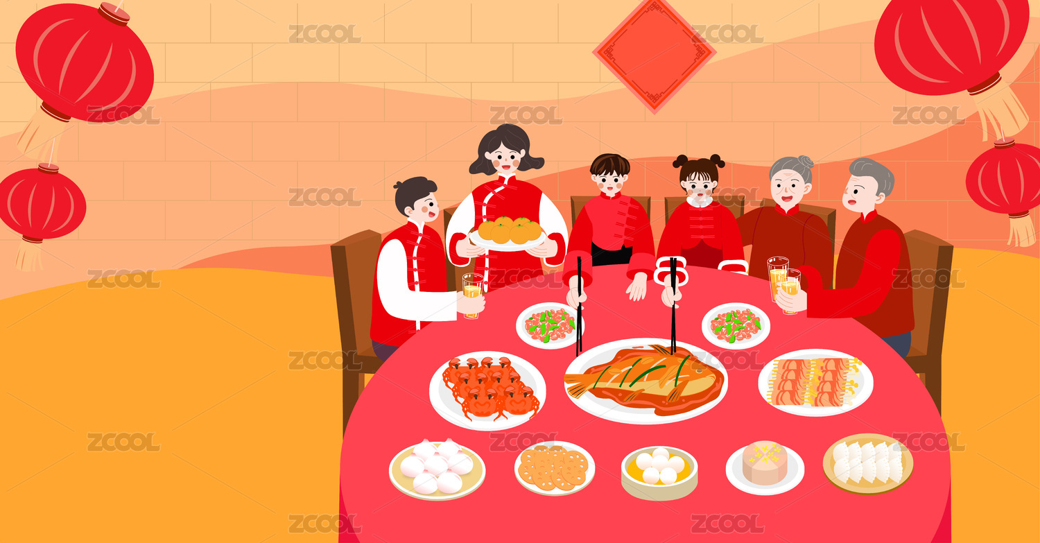 新年年夜饭插画