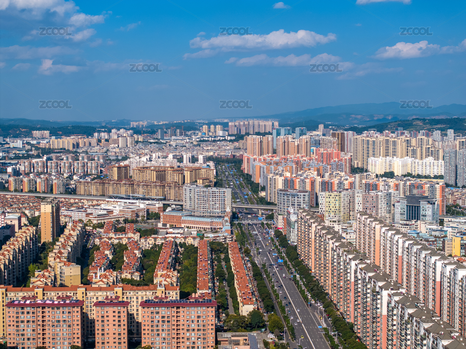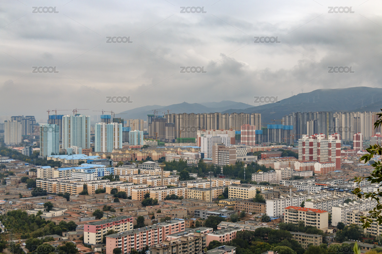 俯瞰中国青海省西宁市新老城区居民楼写字楼
