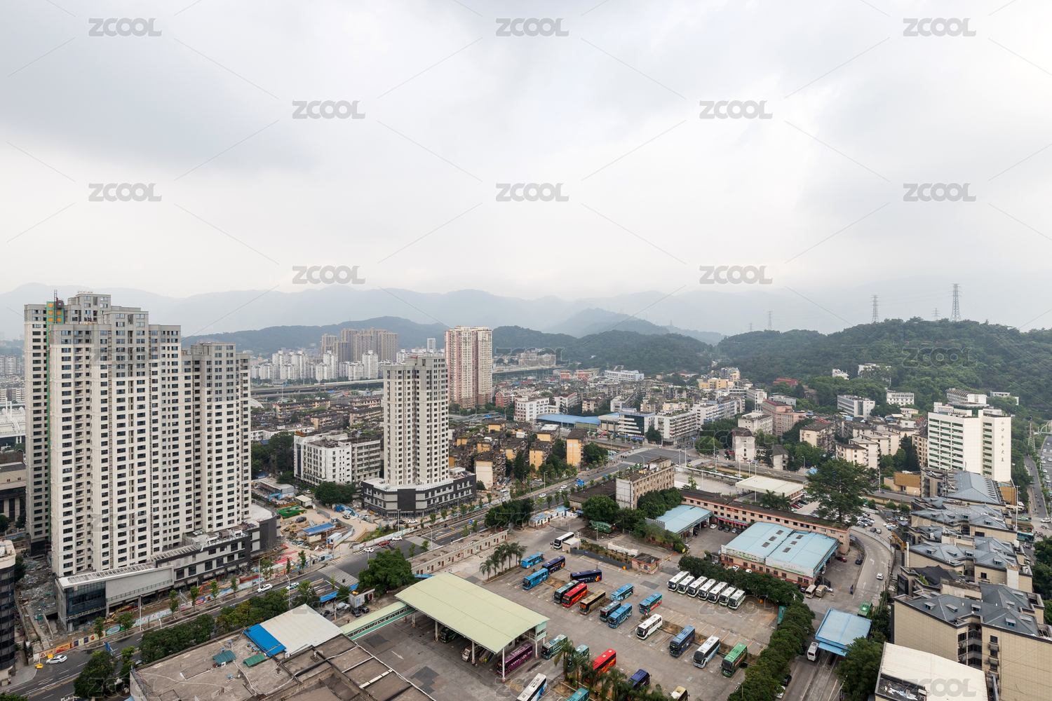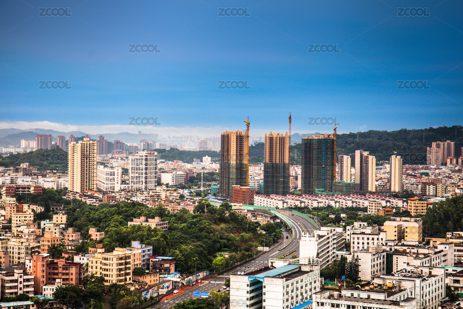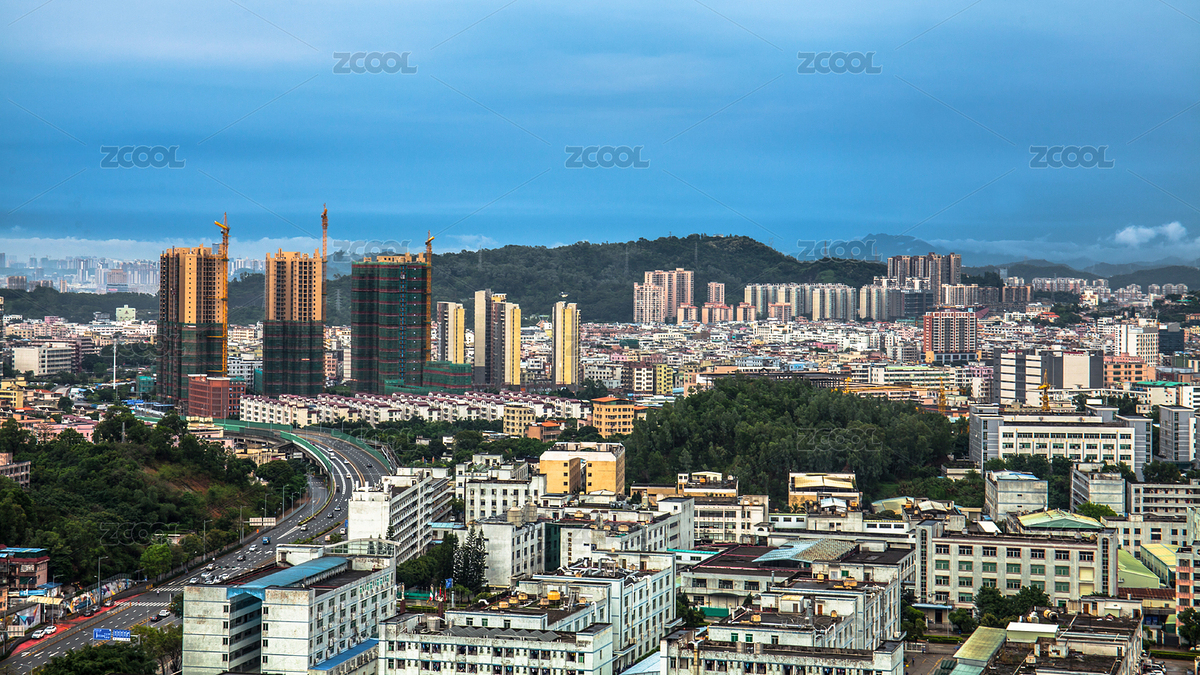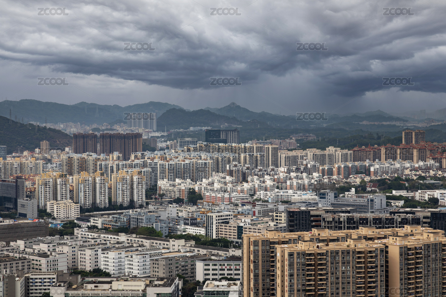 中国广东省深圳市龙岗区平湖建筑群傍晚风光