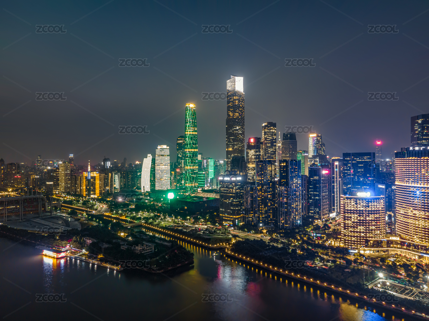 都市风光,夜晚,金融,建筑,航拍视角,广州,摩天大楼,城市天际线,金融区,珠江新城