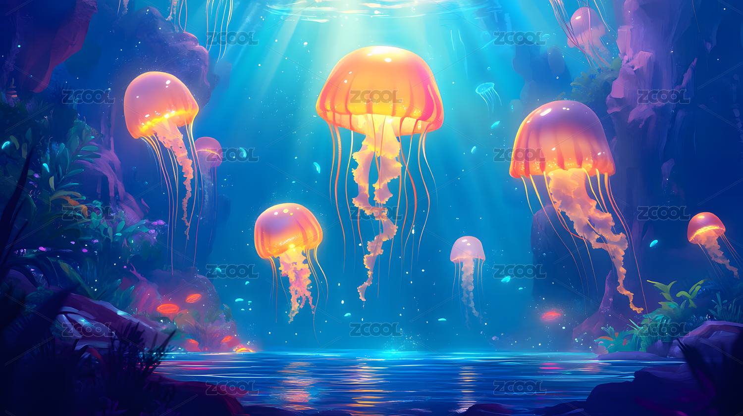 水母大海天空星空梦幻奇幻缤纷唯美卡通漫画