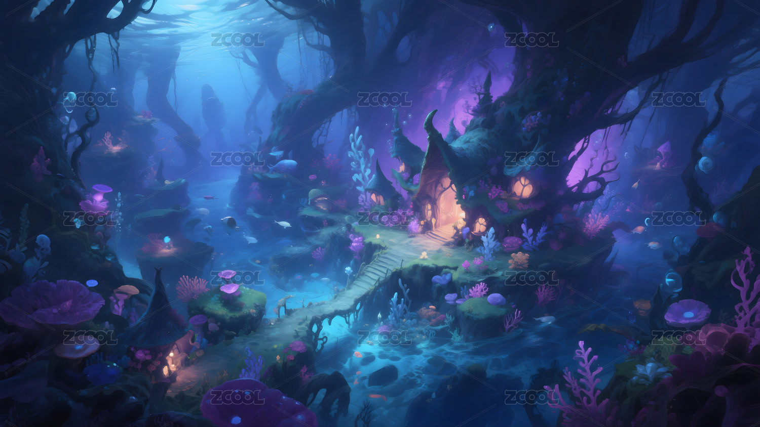 神秘,美丽,热带,雨林,发光,水母,植被,梦幻,自然,森林