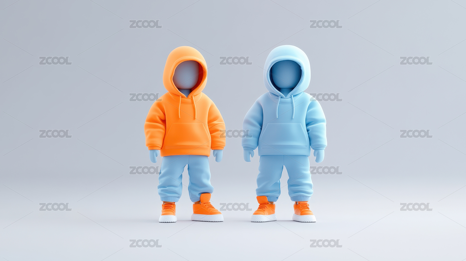 DXCZ202401,简约设计,生活方式,3D渲染,皮克斯风格,时尚潮流,色彩搭配,休闲装,服饰展示,可爱风格