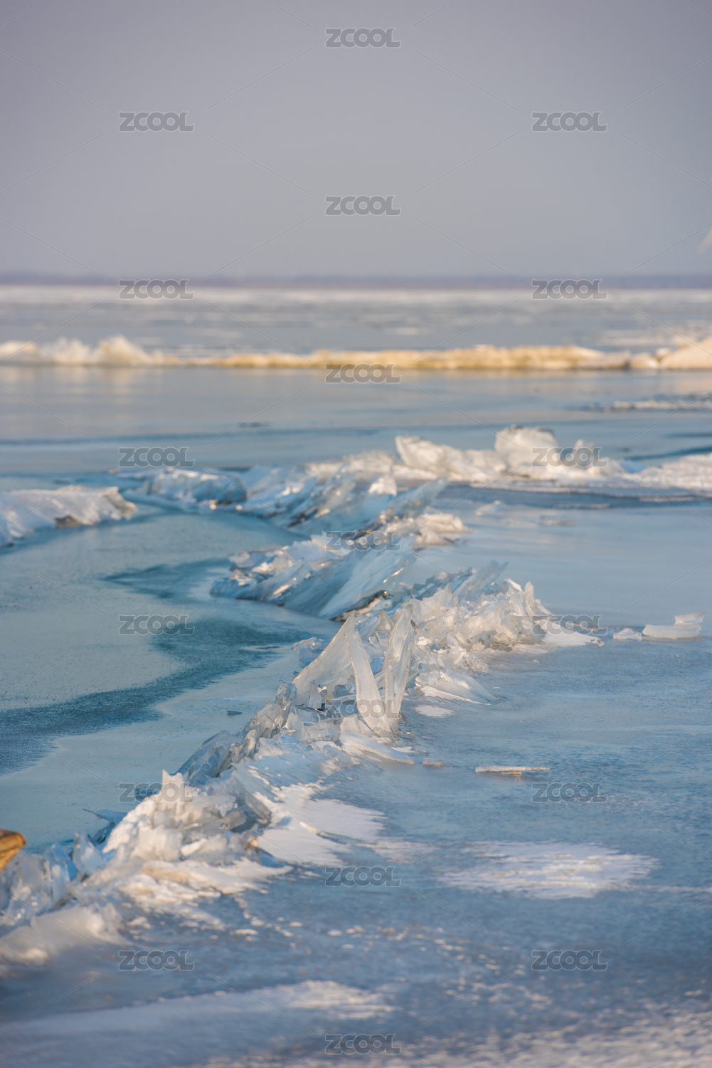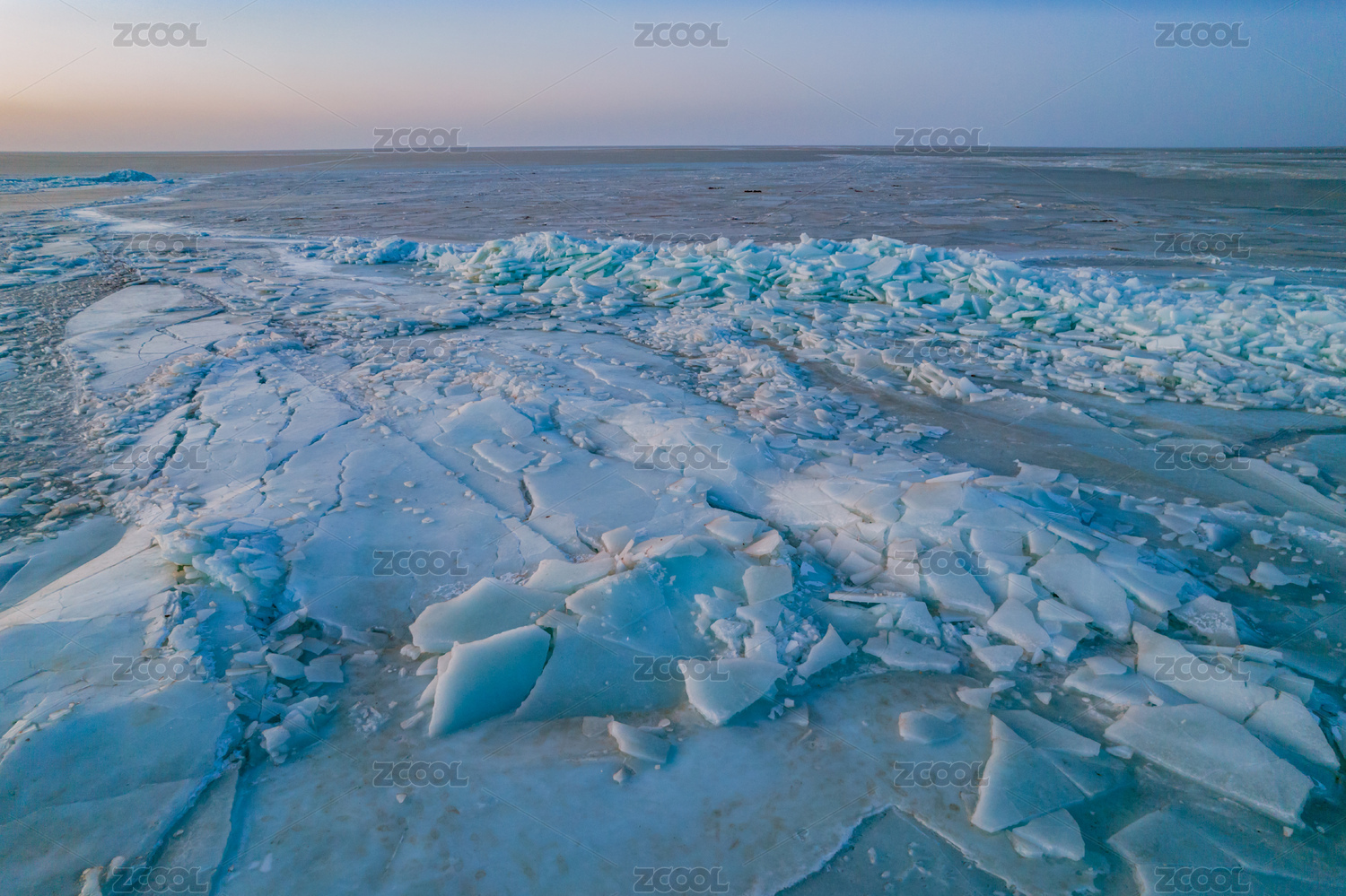 中国河北省张家口沽源县库伦淖冬季湖面冰裂景观