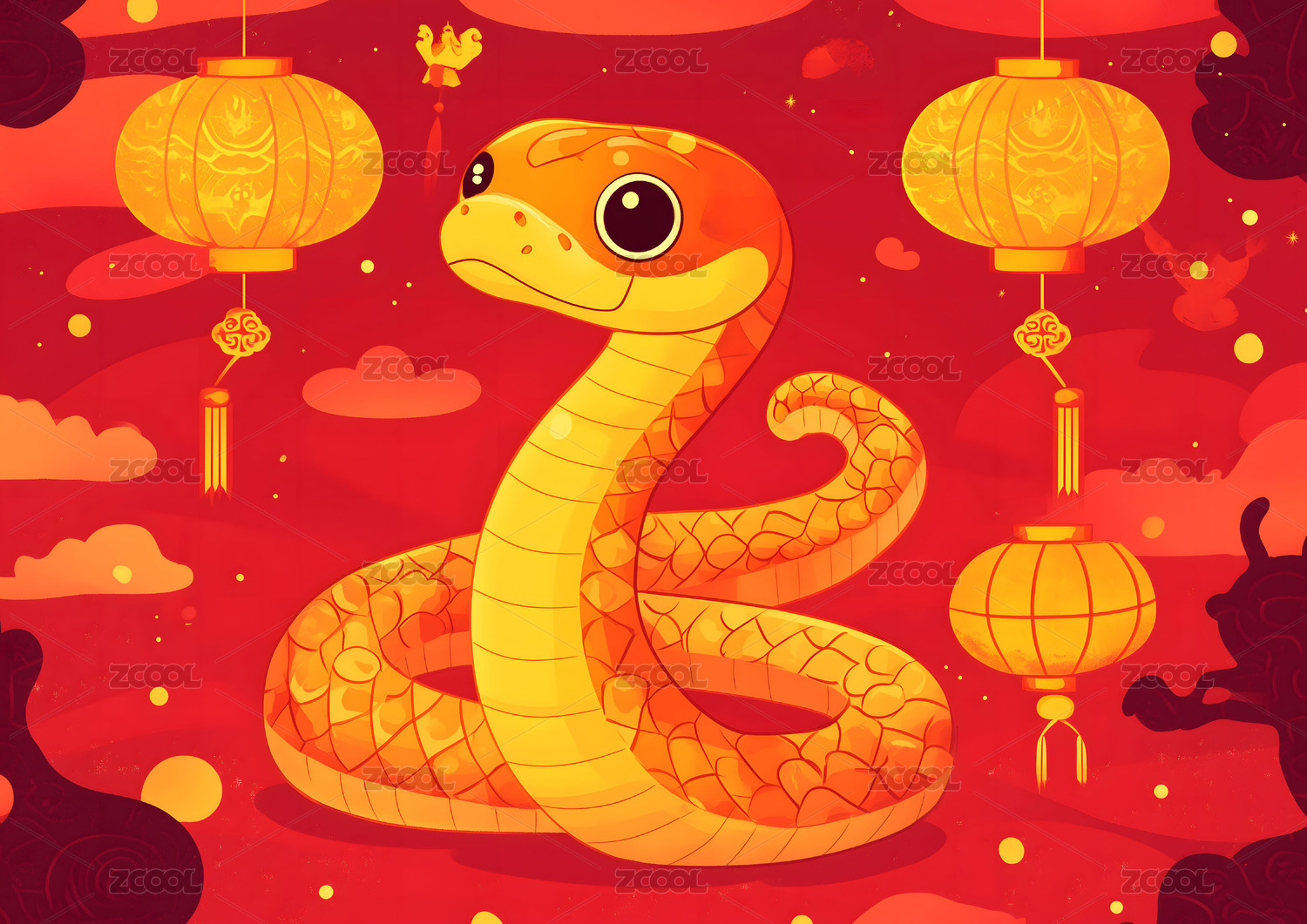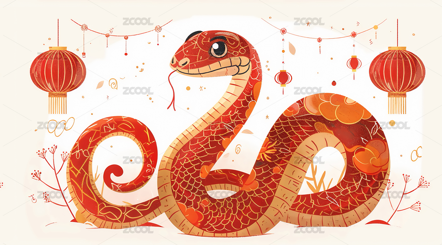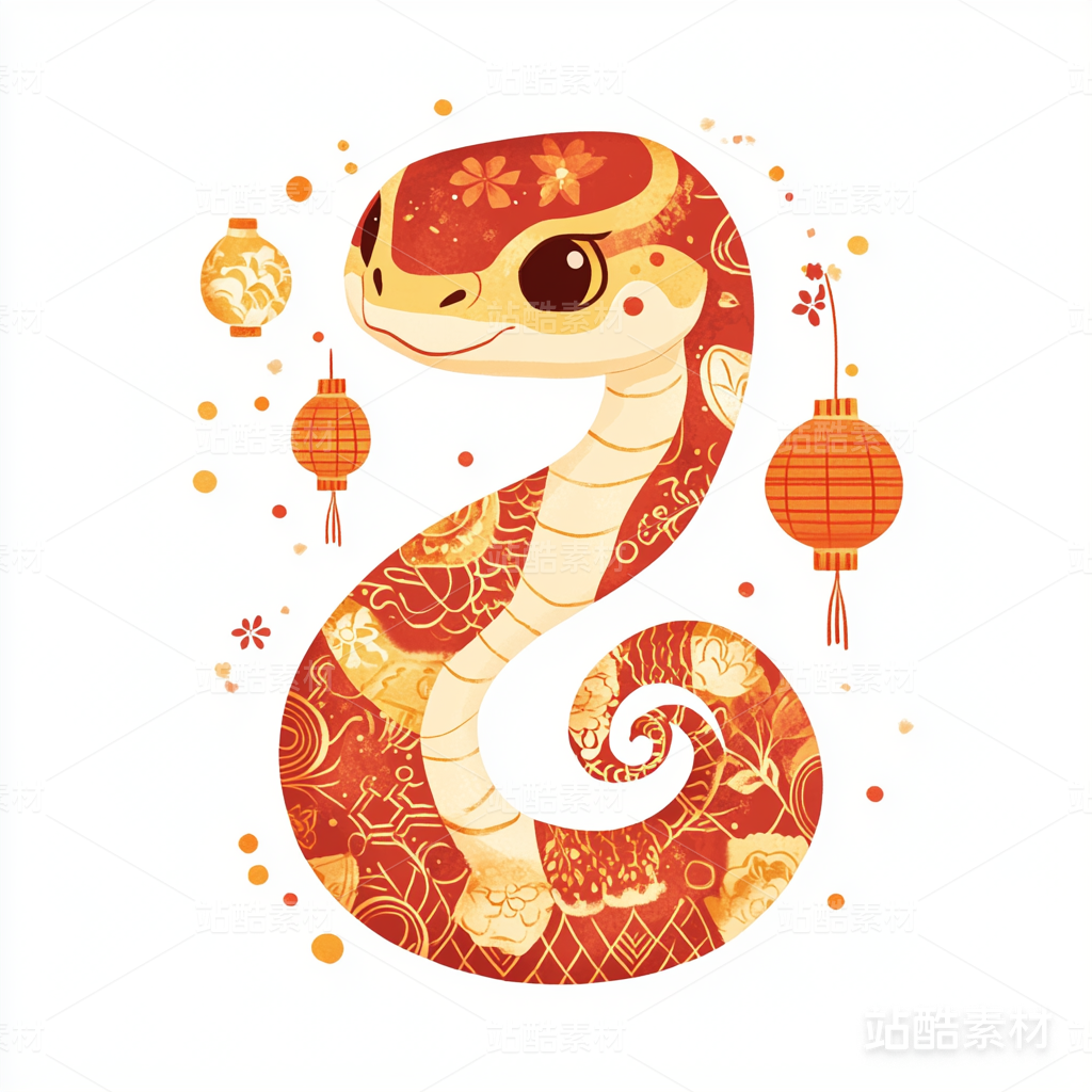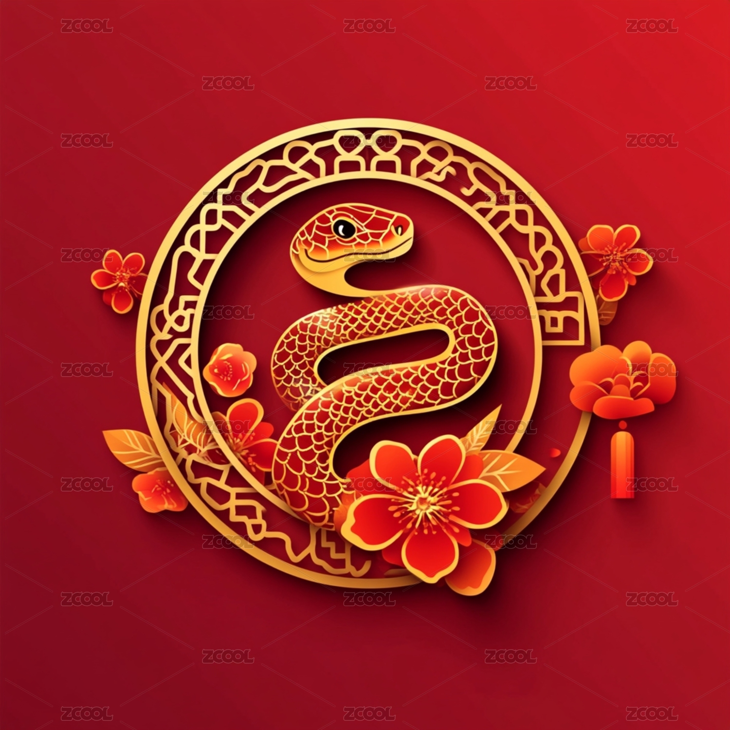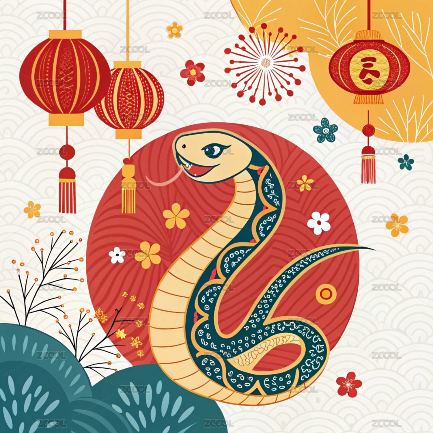 2025蛇年春节十二生肖巳蛇剪纸风格