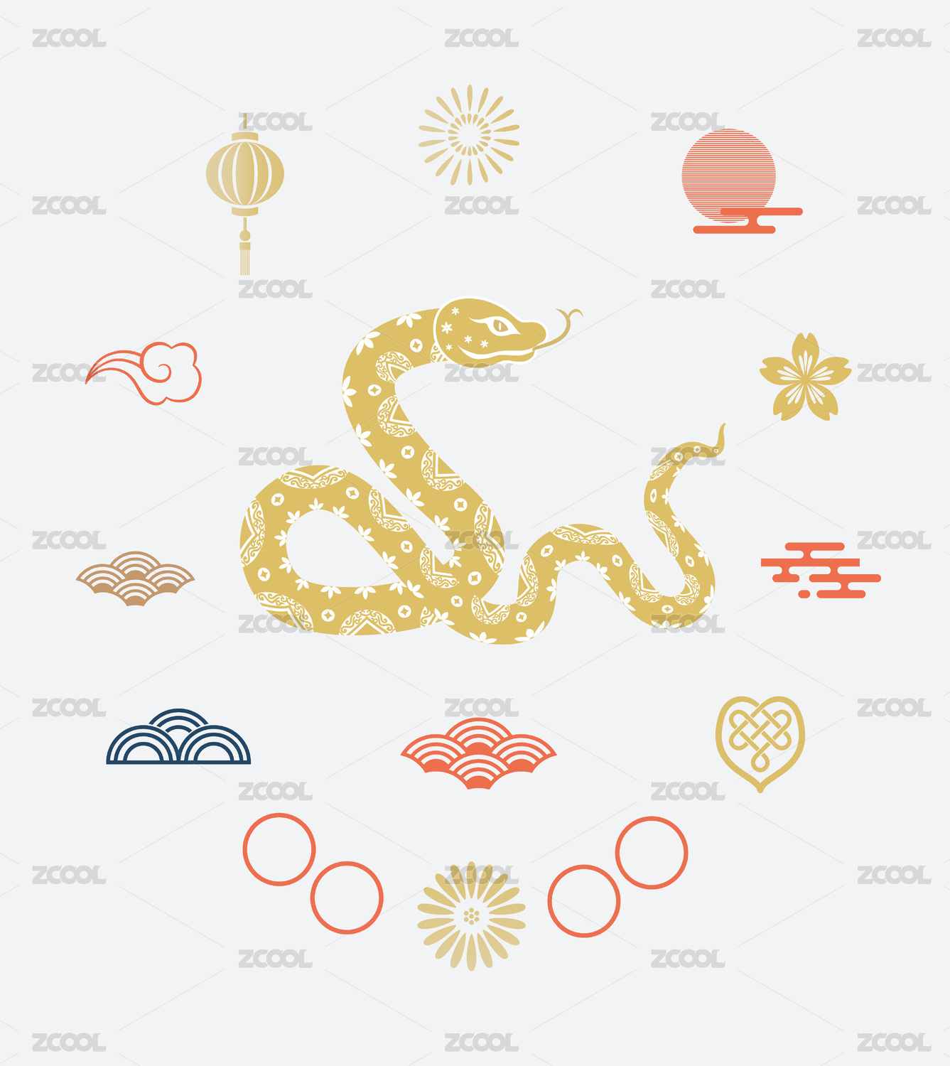 蛇年主题插画艺术剪纸图案logo徽章标志