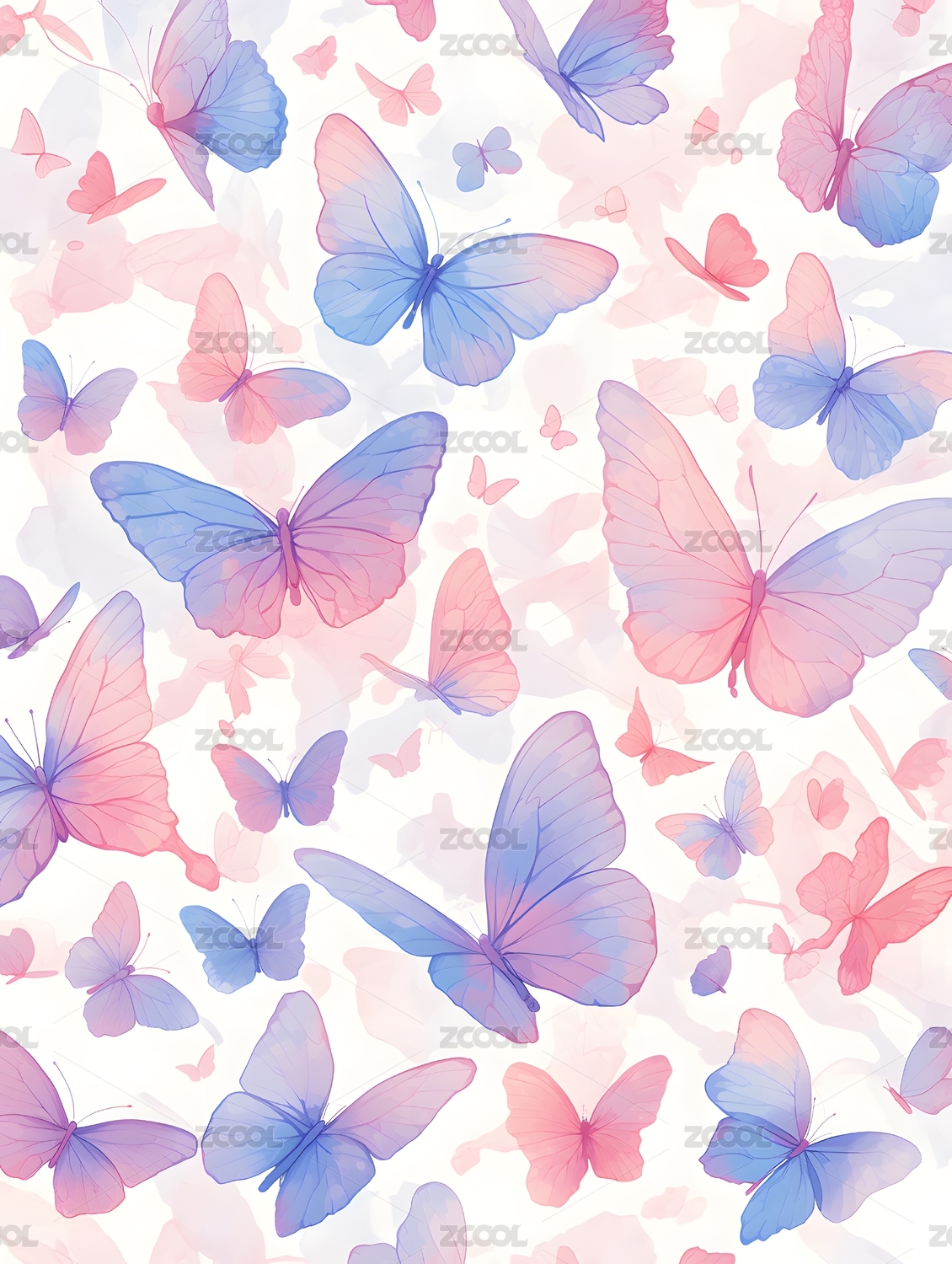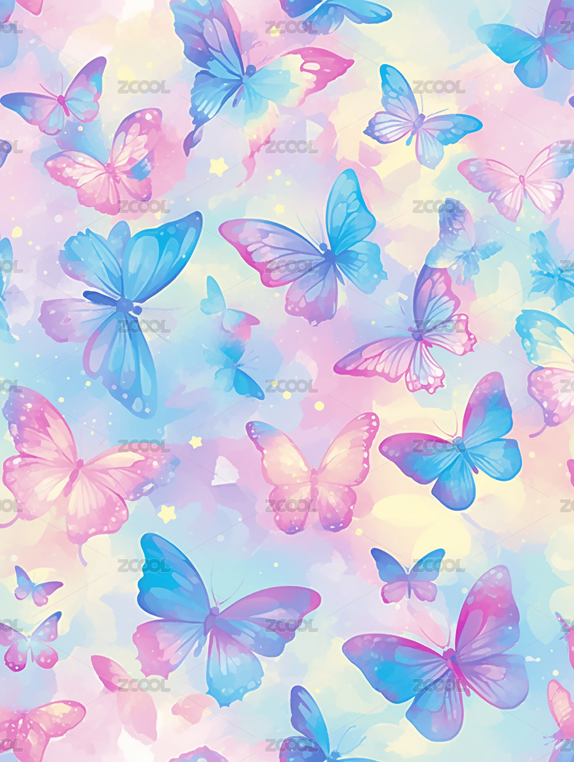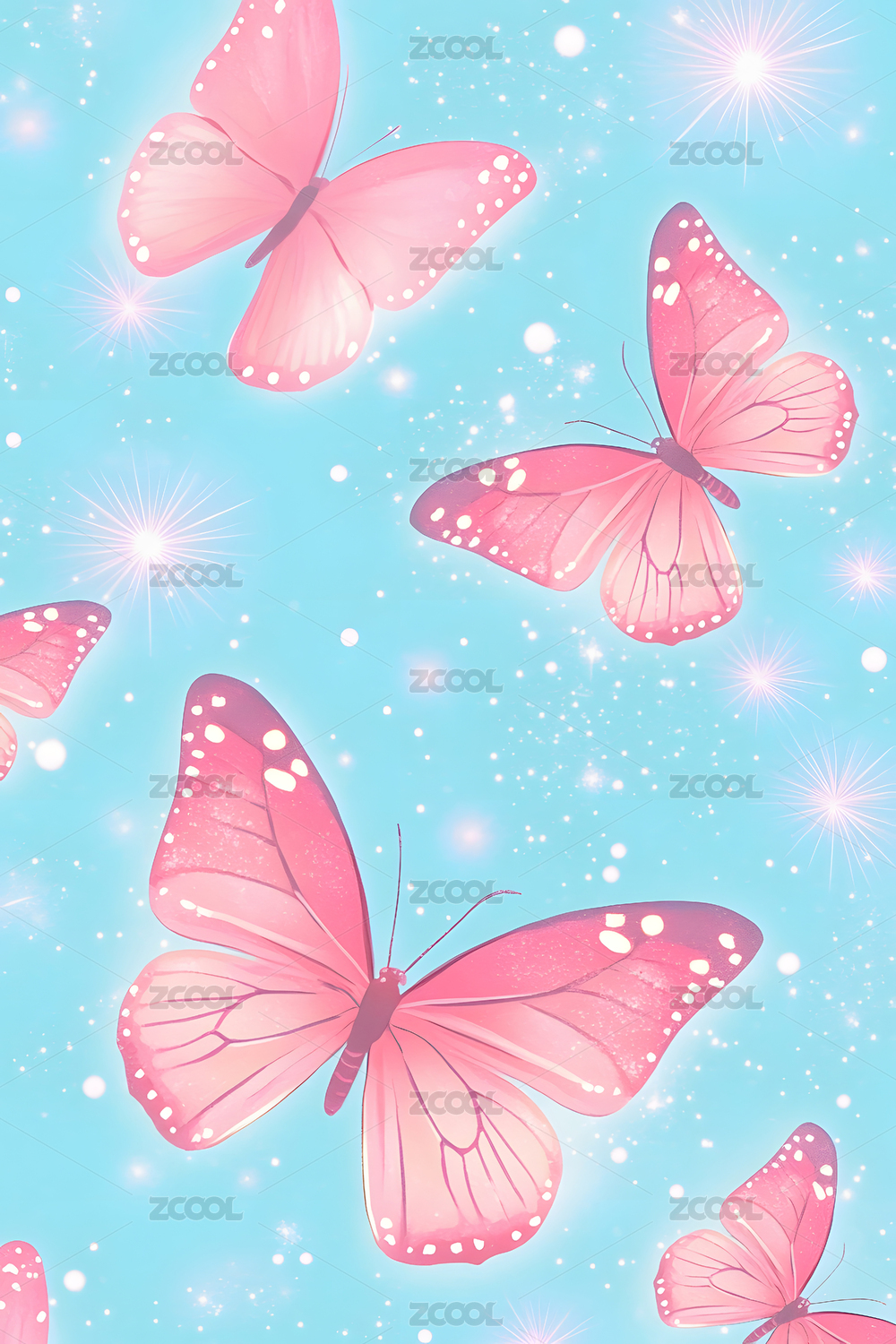 唯美梦幻展翅飞翔的蝴蝶图案印花插画