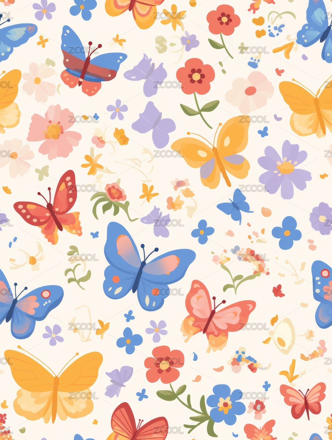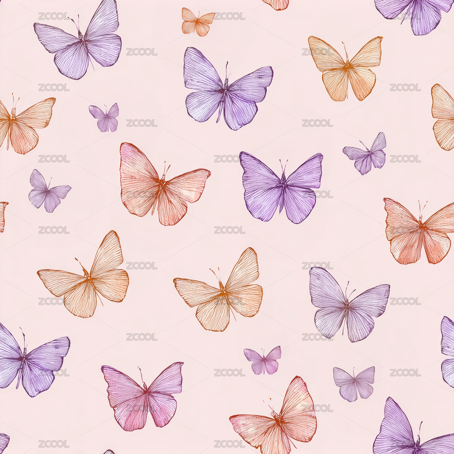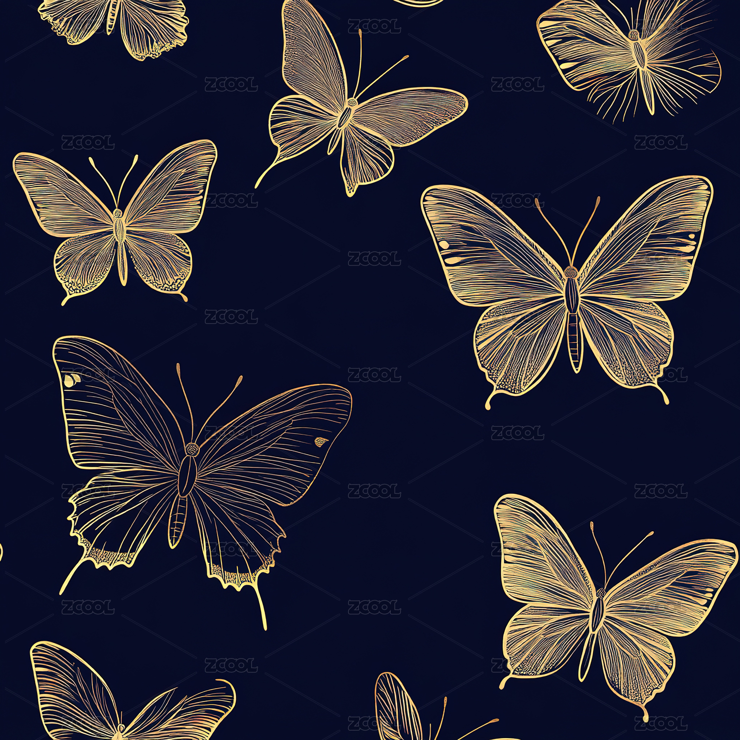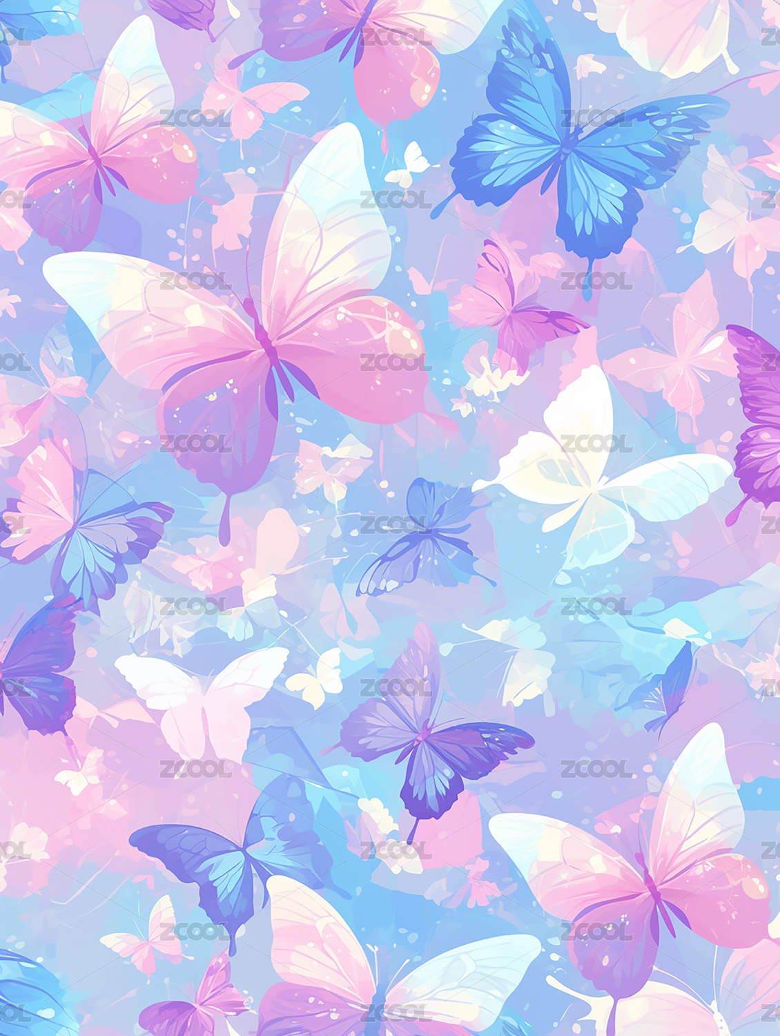 唯美梦幻展翅飞翔的蝴蝶图案印花插画